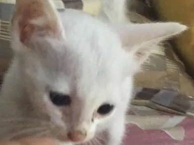 Snow tem aproximadamente dois, ja usa a caixinha e come ração seca.