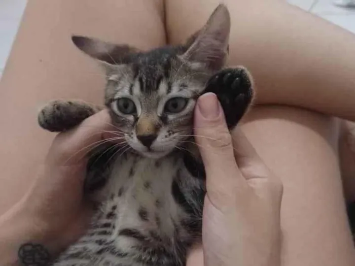 Extremamente brincalhão, já come ração e faz necessidades na caixa de areia
