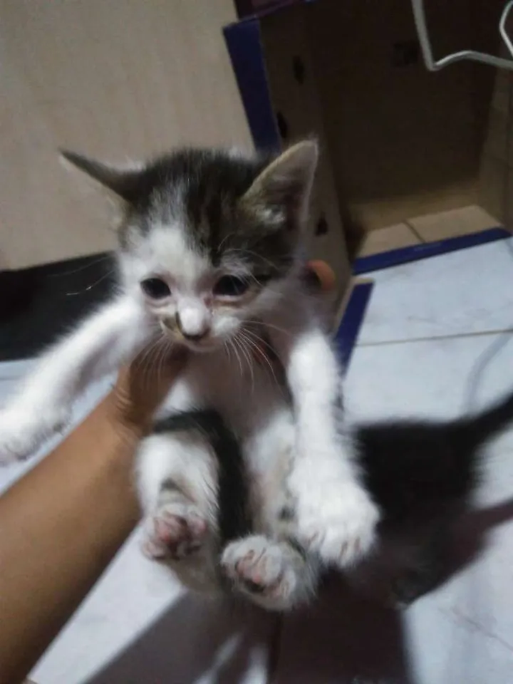 Encontrei esse gatinho na rua de casa mas infelizmente não posso ficar com ele pois já tenho 2 cachorros e 2 gatos. Espero que alguém acolha ele em seu lar, antes que eu tenha que levá-lo embora. Por favor salvem ele !!!!