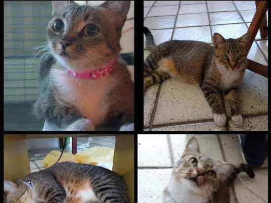 Nina possui listras por todo o corpo, porém as 4 patas são brancas, o peito é branco e a ponta de uma de suas presas é quebrada. Obs: Ela é castrada. Ela sumiu nas imediações do Largo da Encruzilhada.