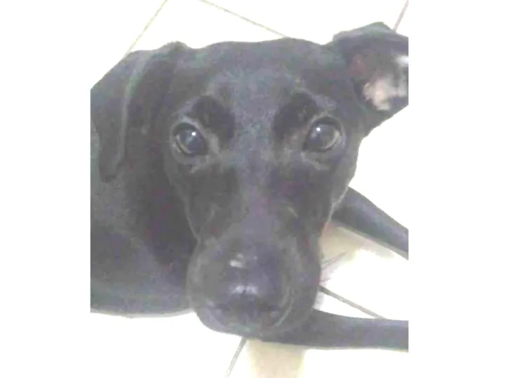 Ela atende pelo nome de belinha ela é preta de um um dos dedos da patas branco a pontinha do rabo é branco, e tem o fuzinho fino ela muito brincalhona é acostumada com crianças