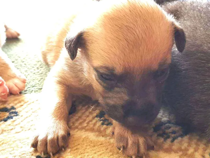 A mãe e o pai da cadelinha são pequenos, um pouco maior que pinscher, são vira-lata a mãe é de pelagem preta e o pai é de pelagem clara. A cadelinha é muito dócil, a mais carente da ninhada, muito amorosa e brincalhona.