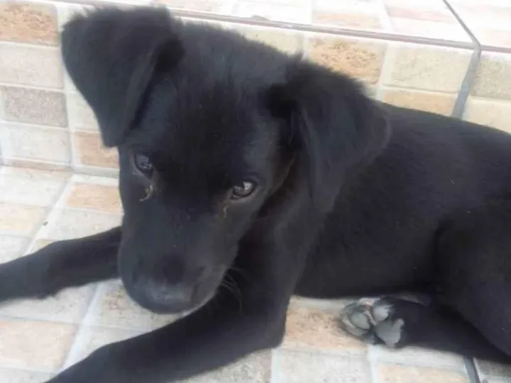 Cachorrinho filhote preto aproximadamente 3 a 4 meses foi encontrado no estacionamento do mercado Roça Grande araucária