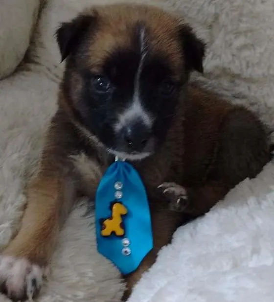 Este cachorrinho é o ultimo de uma ninhada que foi abandonada logo após o nascimento em meio a chuva e sozinhos.