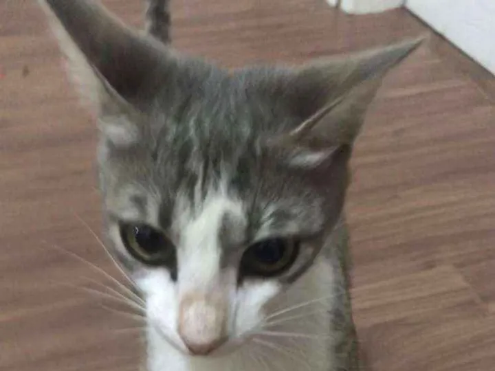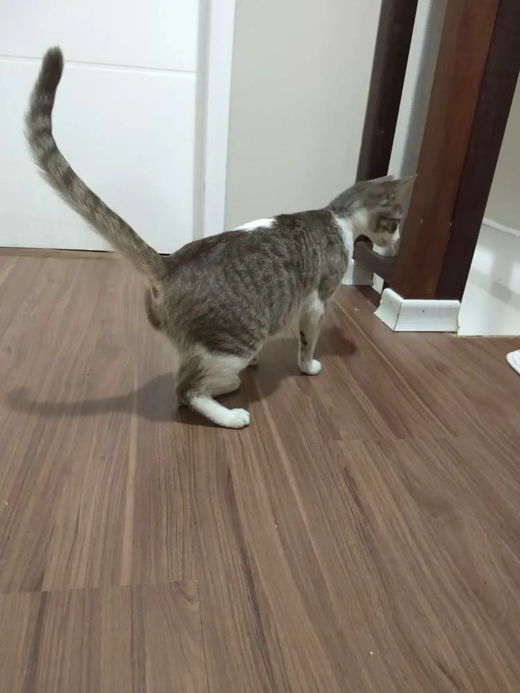 Pessoal, essa gatinha apareceu agora a noite aqui em casa(Jd Iguaçu), assustada e com muita fome, porém, bem cuidada. Acredito estar perdida, por gentileza compartilhem para chegar até os donos.