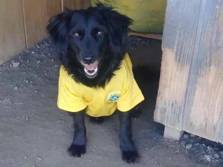 Café é um cão adulto, jovem de aproximadamente 4 anos.