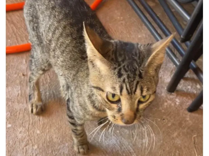 Este animalzinho foi encontrado em minha casa, ele estava escondido e miando muito pois estava com fome então eu alimentei ele e ele ficou um pouco mas calmo, mas mesmo assim ele continua miando acredito que ele esteja machucado e eu estou com muita dó dele pois não posso adotar porque já tenho um gato