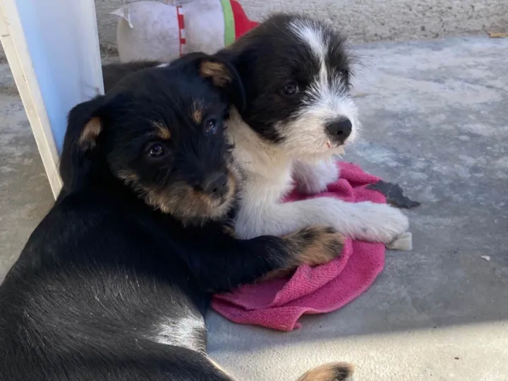 Murphy e Lilica são dois adoráveis cães da raça SRD, ou Vira-Lata, prontos para encontrar um lar cheio de amor. Com uma charmosa pelagem branca e preta, esses dois têm entre 2 a 6 meses de idade e um porte médio que se adapta bem a vários espaços. Eles se destacam por serem extremamente brincalhões e sociáveis, o que os torna excelentes companheiros para famílias e lares com crianças. Sempre prontos para uma boa brincadeira no quintal, eles adoram explorar e são muito curiosos. Murphy e Lilica são ótimos para casa com quintal, onde podem gastar energia à vontade. Ambos têm um temperamento muito amigável e se dão bem tanto com pessoas quanto com outros animais. Se você procura por um amigo fiel que traga alegria e diversão para sua casa, Murphy e Lilica são as escolhas perfeitas. Dê a eles a chance de crescer em um ambiente amoroso e prepare-se para momentos inesquecíveis repletos de carinho e diversão. Venha conhecê-los e se encantar por esses dois corações peludos!