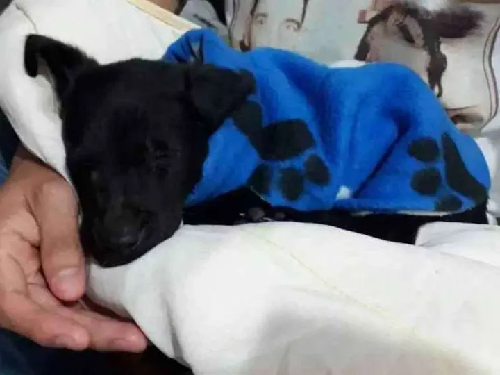 Foi abandonado no meu portão. Já o levei no veterinário, já está com a primeira vacina e com remédio de vermes. Não condições para cuidar e ficar com ele.