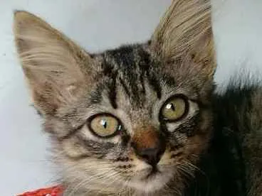 Nome?: Dóris. Sexo: fêmea. Idade: 3 meses. Pelagem: semi-longa, tigrada. Olhos: Verde amarronzado.