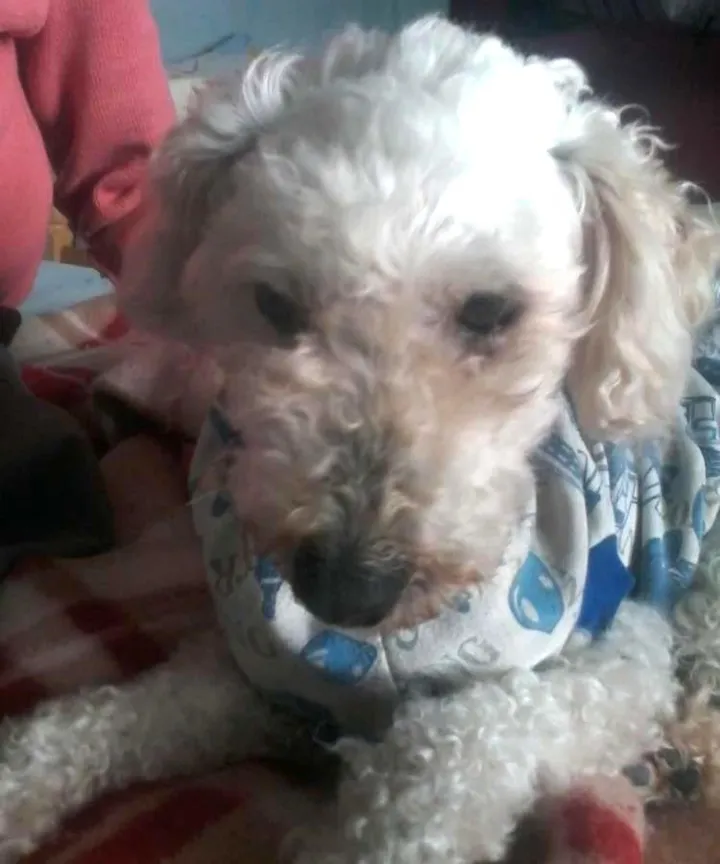 esse cão estava só na rua com muito medo e frio , recolhemos ele mas
