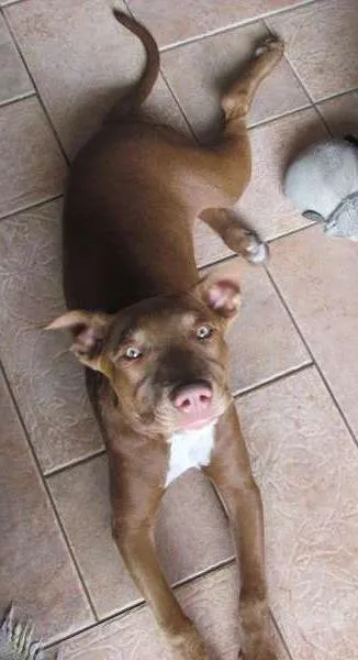 Alice é uma Pitbull fêmea, filhote de 4 meses. Já tomou duas vacinas de um total de quatro. Deverá ser castrada após receber todas as vacinas. É muito dócil com pessoas, brincalhona. Convive com outros cães, porém a preferência é para que seja "filha única". Precisa de muito espaço, carinho e atenção.