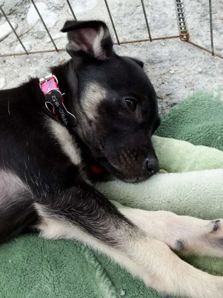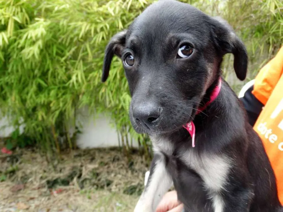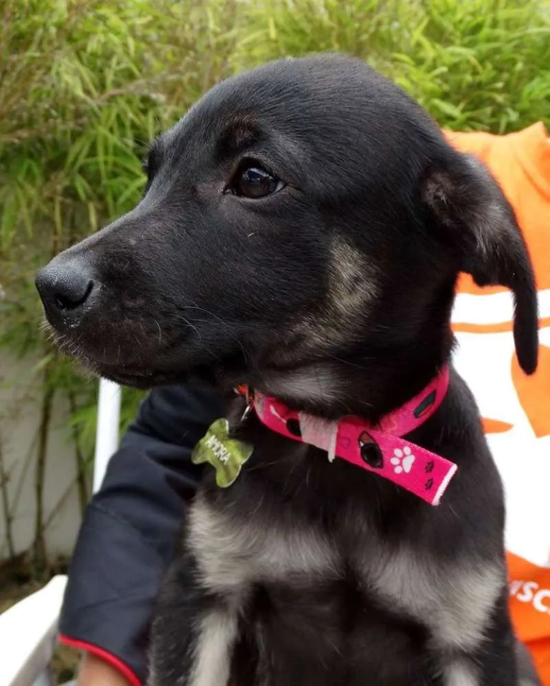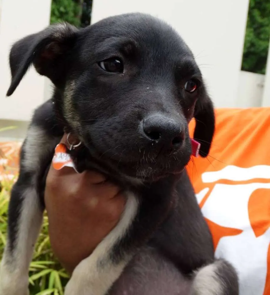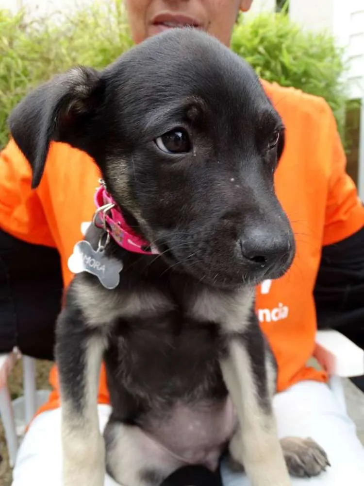 Amora fêmea, 3 meses, provável porte médio/ grande. Está com 1° dose da vacina e só sera doada com compromisso de castração paga e agendada.