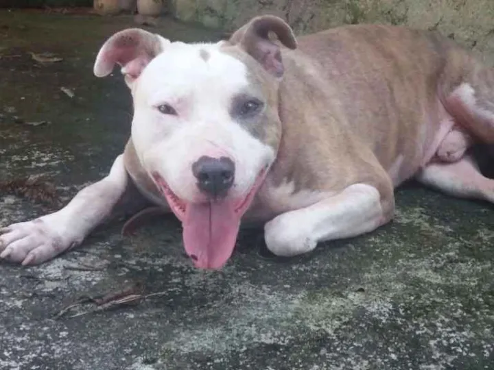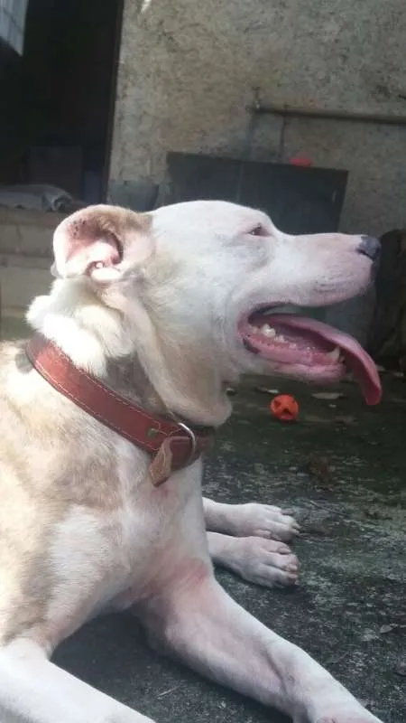 Banzai, macho, Tem entre 3 e 4 anos. Brincalhão, afetuoso, anda bem na guia, obediente e muito protetor.Ideal que seja o único cachorro ou que tenha outro de porte semelhante. Aparentemente, convive bem com outros cães, mas é necessário testar a aceitação antes.