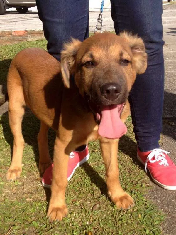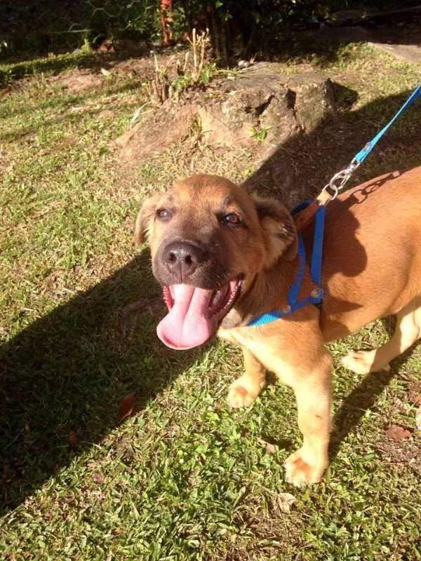 Bartô é um filhote muito ativo, machinho, 4 meses, vacinado. Adora brincar e se da bem com outros cães, adora crianças e deve ficar porte médio/grande. Só será doado com compromisso de castração paga e agendada.
