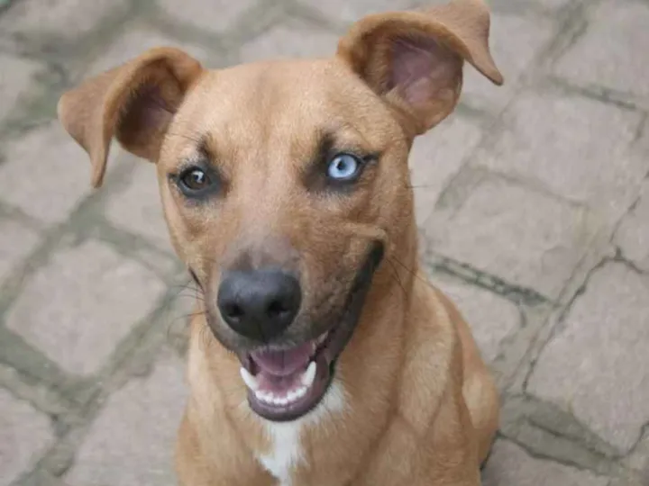 Conheça a Blue, uma cadela doce e carinhosa de 2 anos. Castrada, vacinada e pronta para encontrar uma nova família. Adote amor e amizade!