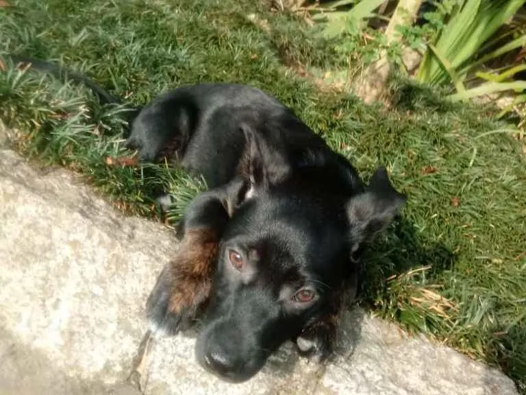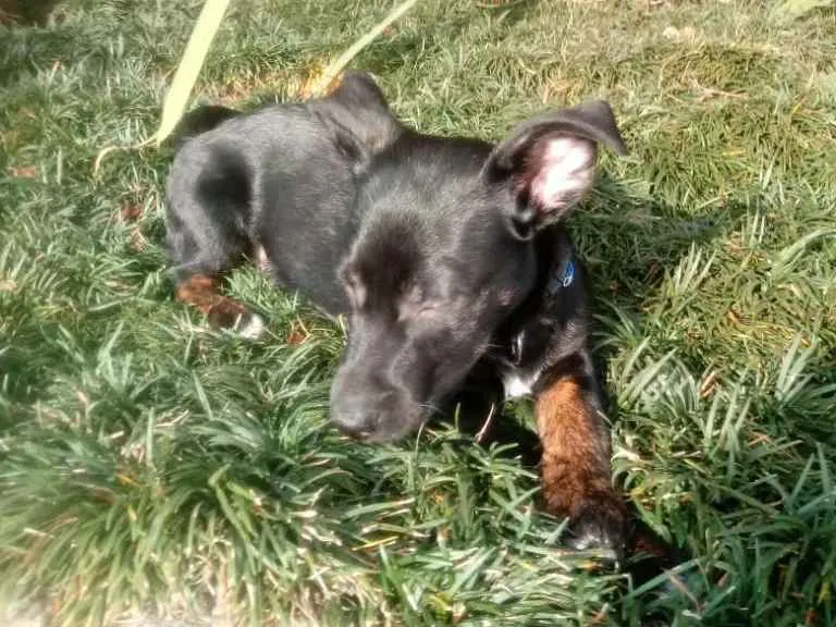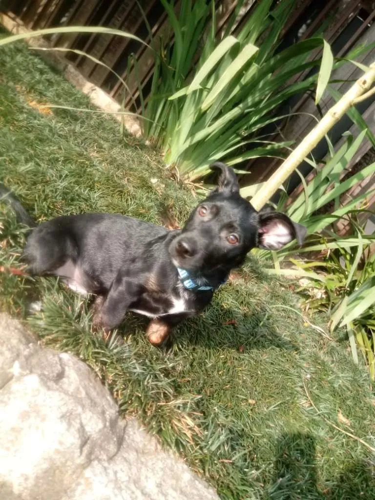 COMO FOI RESGATADO NÃO DÁ PRA SABER A IDADE EXATA, MAS É UM PITICO. SUPER AMOROSO E QUERIDO