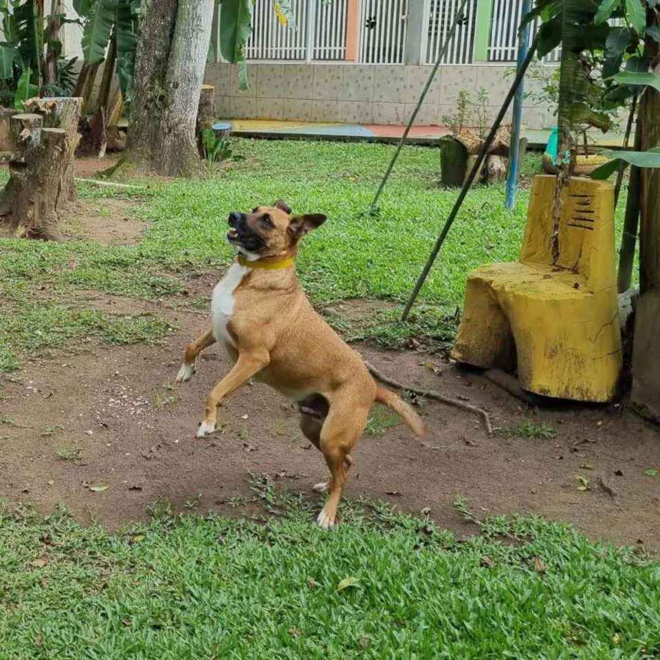 BULL é este caramelo lindo com aproximadamente 4 anos e meio. Veio das ruas de Curitiba, enquanto enfrentava uma briga, com outro macho, por causa de uma fêmea, no cio. Os três vieram para cá. Depois de castrados, se tornaram os melhores amigos. Os outros foram adotados, e ele continua aguardando a sua vez. Bull tem porte médio e é um guri muito querido. Adora receber carinho dos humanos e também é sociável com os outros cães. Acreditamos que deve existir em algum lugar, uma família que se apaixonaria pelo Bull. Que tal conhecê-lo pessoalmente? Entre em contato pelo whats com a Sueli (41) 99122-3085 e venha nos visitar.