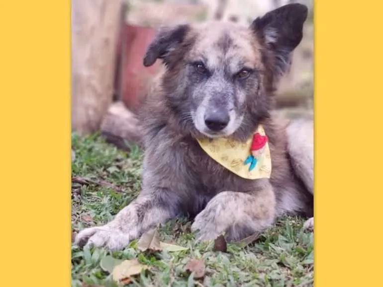 Não conhecemos a história de vida do Caco, além do que fizemos e percebemos nessa nossa convivência. Foi castrado, vacinado, está prontinho para ter uma família. Deve ter uns 7 anos, porte médio/grande, saudável, muito carinhoso, gosta de ter pessoas por perto, não gosta de ficar em ambiente fechado, sozinho. Tem esse semblante sério, mas é um gurizão, muito querido. Se você busca um companheirão, conheça-o, fique um pouco com ele, sentirá que valerá muito a pena lhe dar uma chance.