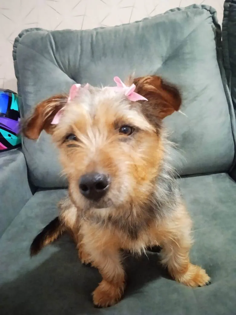 Charlotte, tem 10kg, muito brincalhona e esperta, estava na rua, em 10 dias já aprendeu a sentar, deitar e fazer as necessidades nos passeios, está em um apartamento muito pequeno que já tem uma cachorra não muito sociável, que não gosta de brincar ou interagir.
