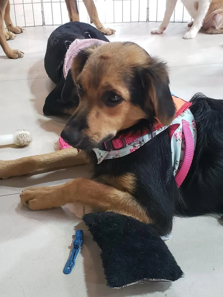 Cloe está com 1 ano, castrada, vacinada, porte peq/ médio