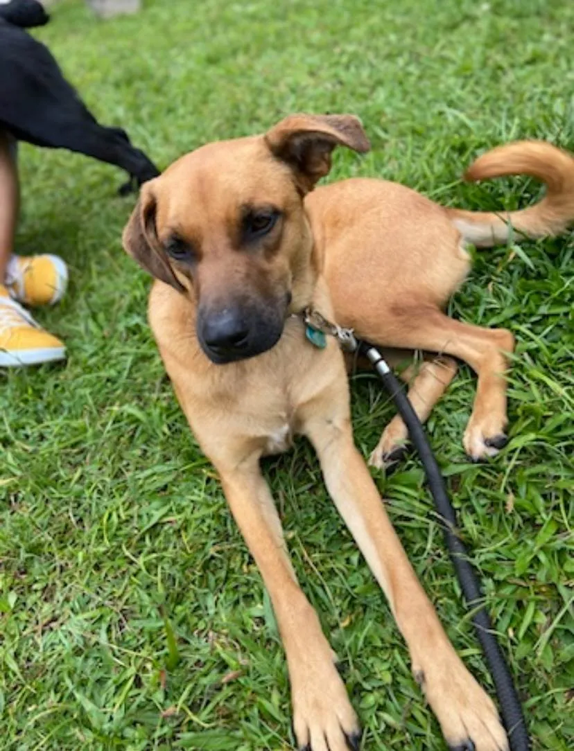Muito manso, se dá bem com outros cachorros e com crianças.
