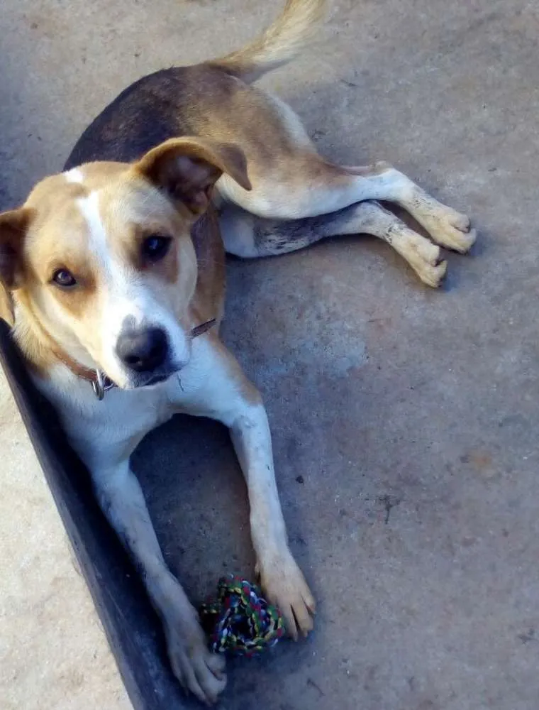 Brincalhona, com aprox. 2 anos, gosta muito de crianças e de outros cães, ainda não testamos seu comportamento na companhia de gatos, adora brincar com bolinhas e é muito dócil!
