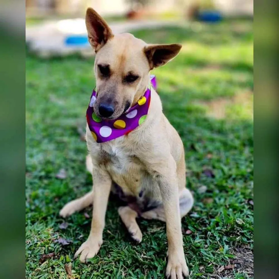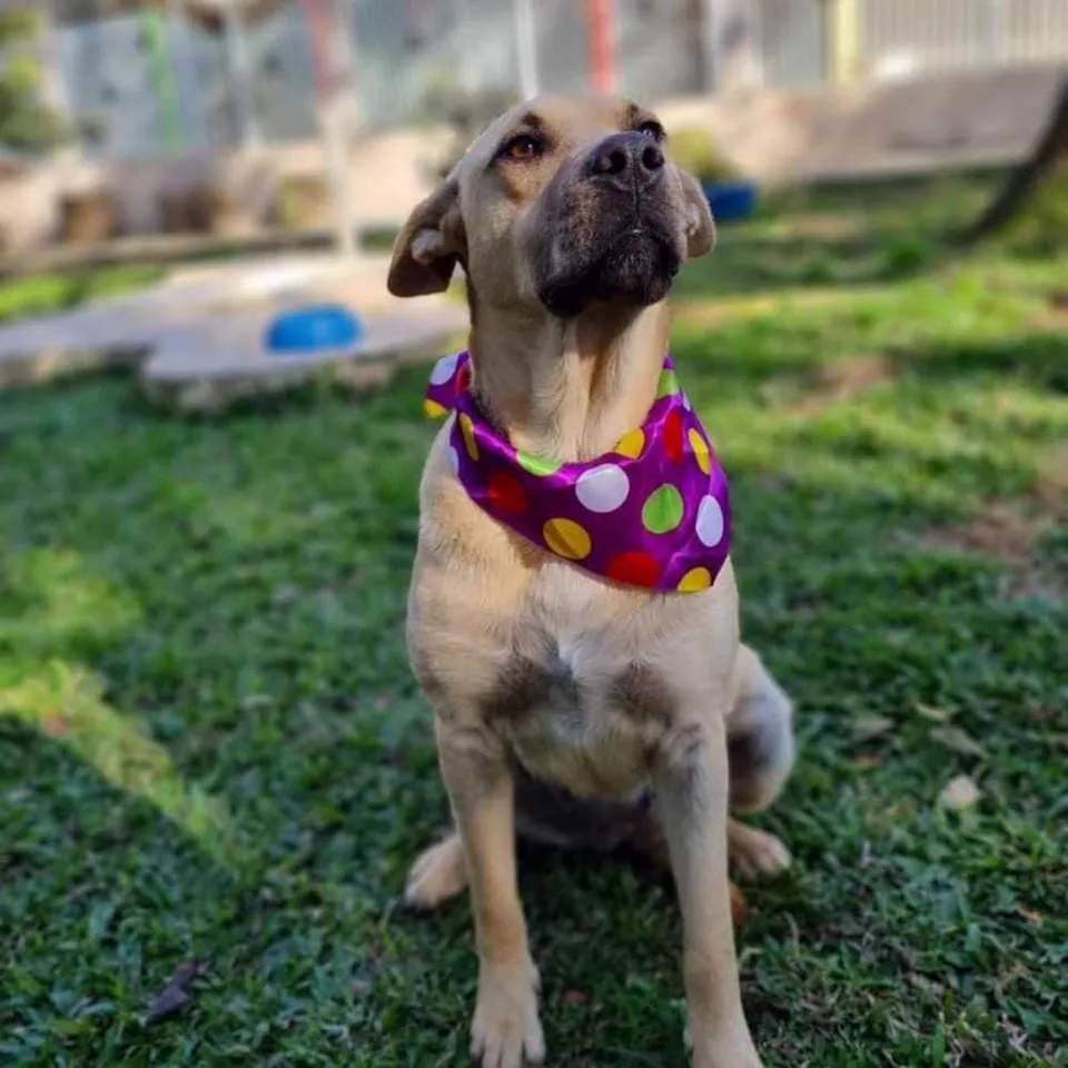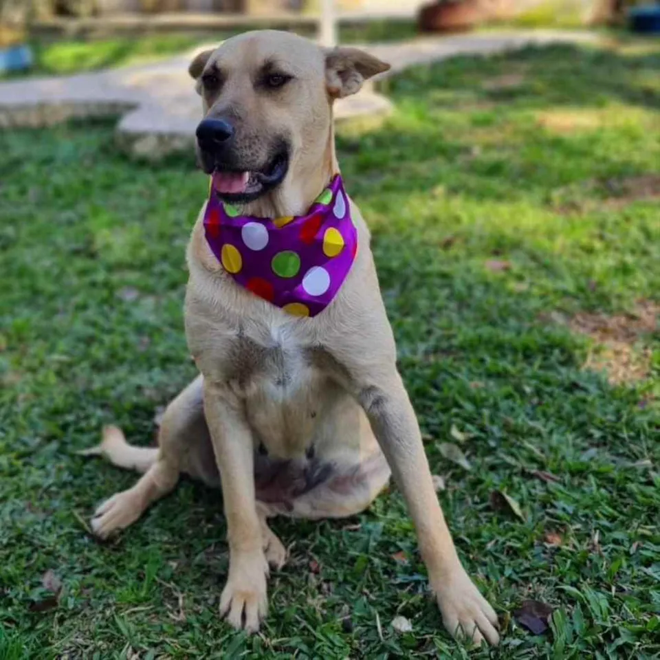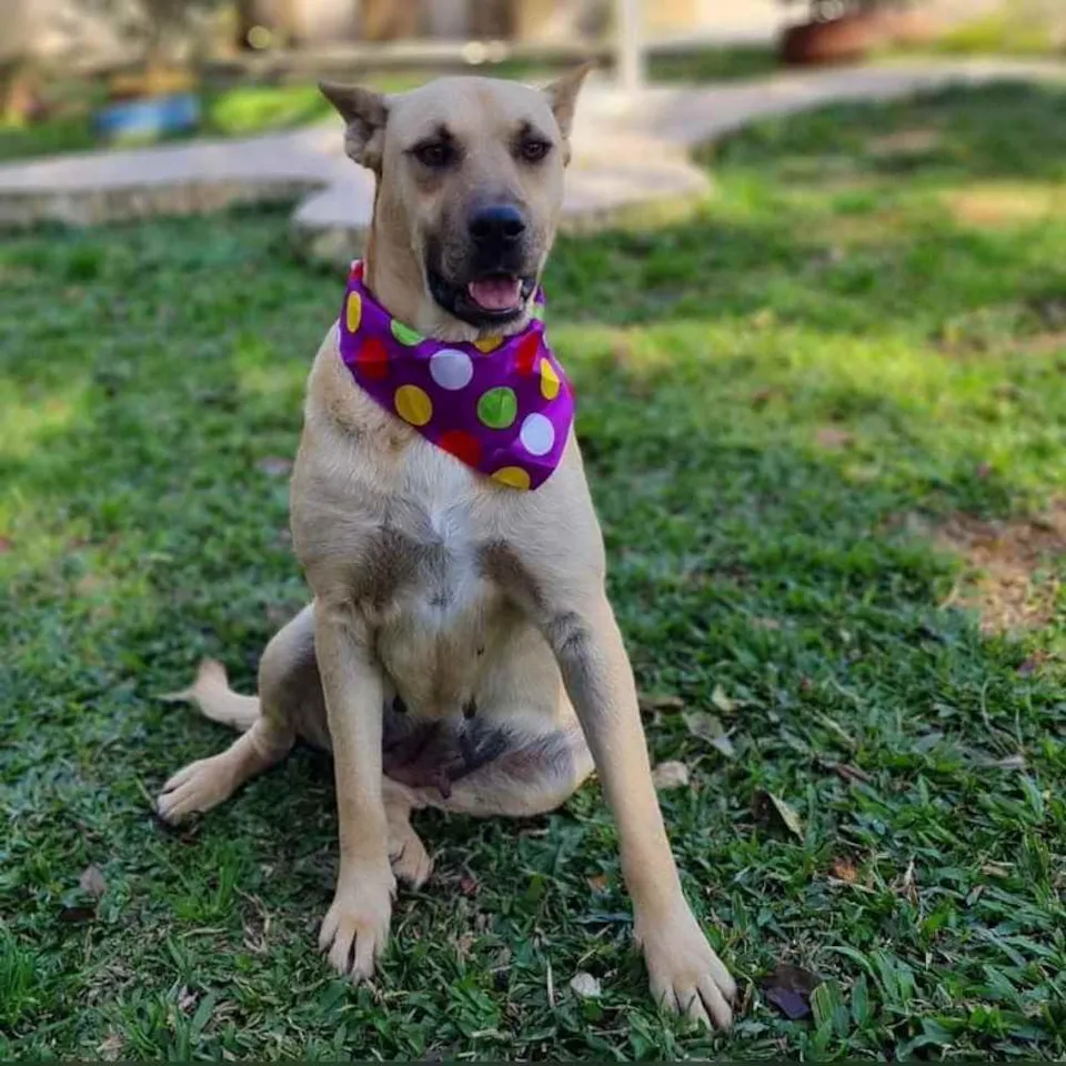 Gema, uma guria de porte grande, castrada e vacinada. Super fácil de lidar, uma querida que gosta da companhia de pessoas e de outros cães. Deve ter uns 5 anos, gosta de brincar, mas também curte relaxar e um bom aconchego. Gostou dela, mas não pode ou não quer adotar? Mostre para os seus amigos. Quem sabe, entre eles, está a família da Gema!