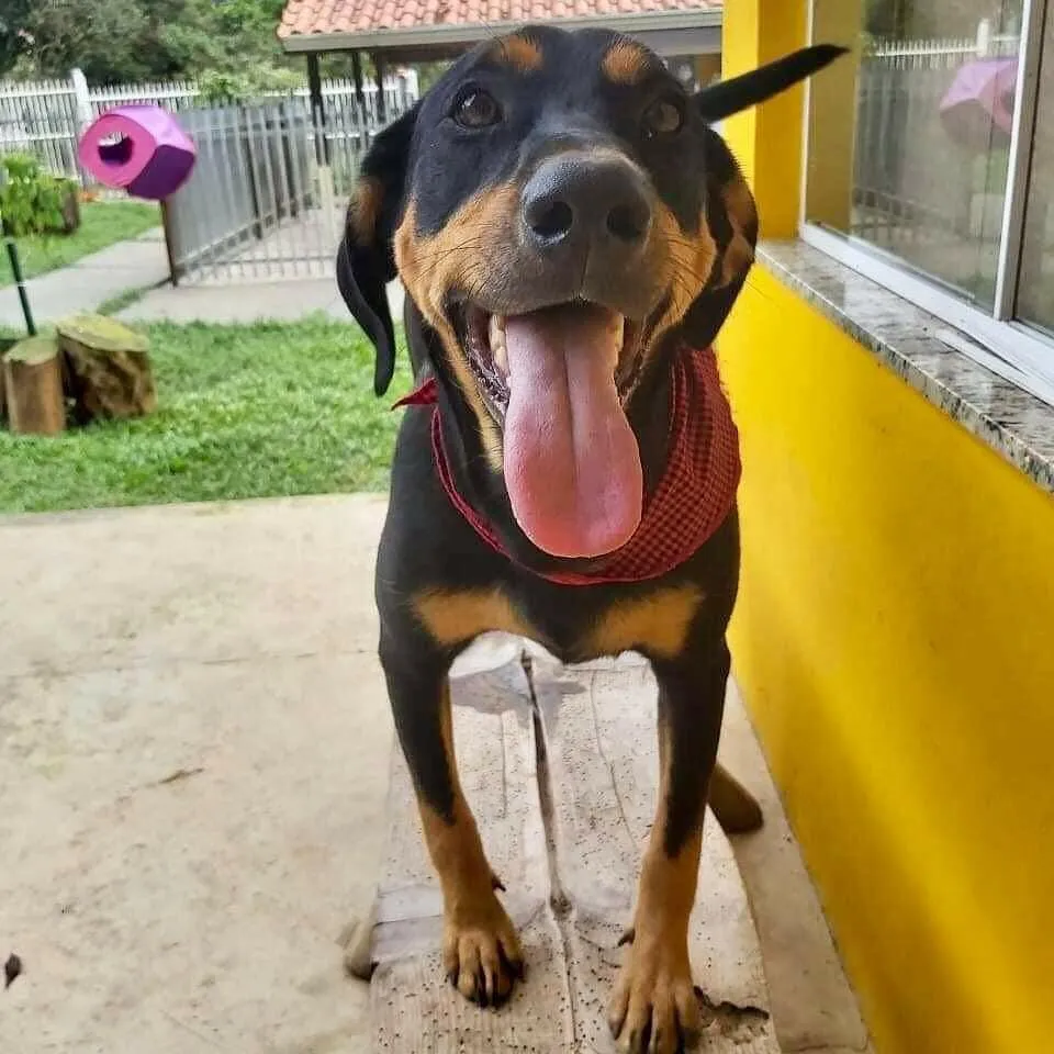 Hur chegou no abrigo em junho do ano passado. Temos uma caminhada intensa, juntos. Sua situação era bastante triste, além de sarna, uma infecção bastante grave na pele. Era apenas um filhote, já passando por tanto sofrimento. Não foi fácil seu tratamento, mas com a dedicação dos tios do abrigo, da tia veterinária, e a ajuda de alguns amigos, em praticamente 2 meses ele se transformou. O olhar de tristeza e dor foi embora e ele se tornou um guri muito ativo e brincalhão, como qualquer filhote. Hur está com aproximadamente 1 ano, de porte médio. Já foi castrado e está com as vacinas em dia. Bastante ativo precisa de uma família disposta a lidar e aceitar um guri com esse perfil e lhe dar todo amor e respeito, que ele merece.