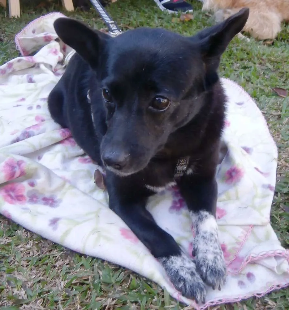 Essa pretinha, porte pequeno é a Ioiô. Ela já é adulta e não cresce mais, vacinada e castrada. Se dá bem com outros cães e gosta de crianças. É uma cachorra tranquila e calma.