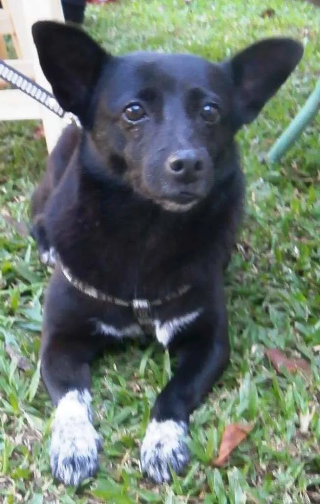 Essa pretinha, porte pequeno é a Ioio. Ioio já é adulta e não cresce mais, vacinada e castrada. Se da bem com outros cães e gosta de crianças. É uma cachorra tranquila e calma. Para adotar essa pequena entre em contato com Beth 41-99372531