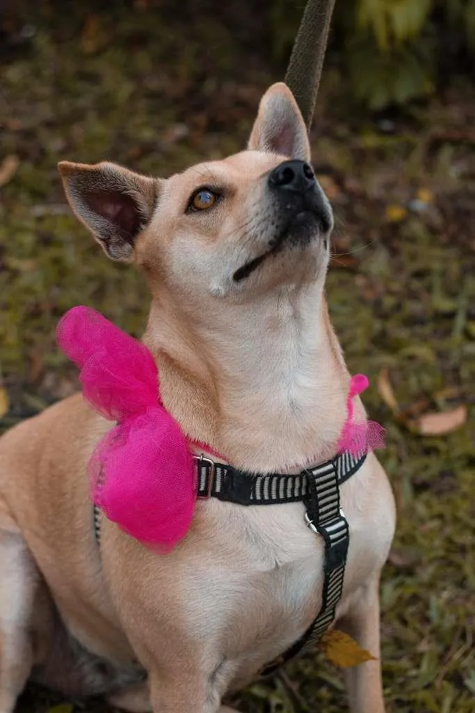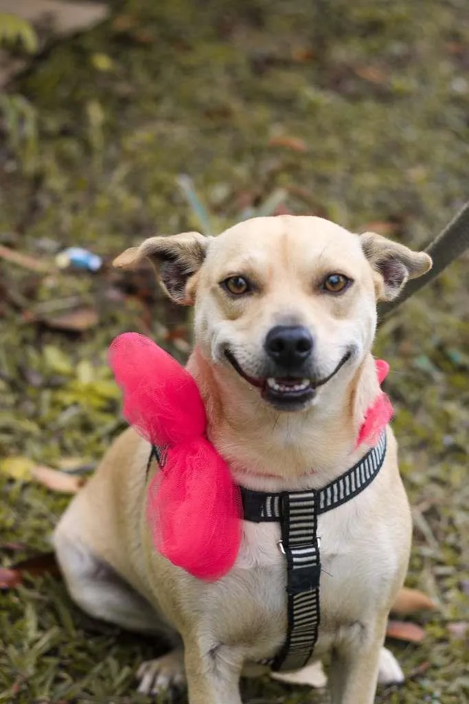 Dócil, carinhosa, tranquila, mas receosa com homens, demora a se soltar e confiar. Precisa de casa com quintal e um cãozinho para cia
