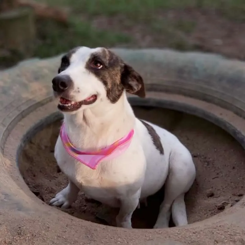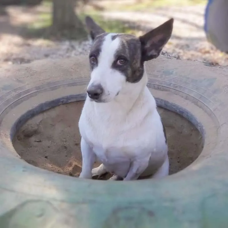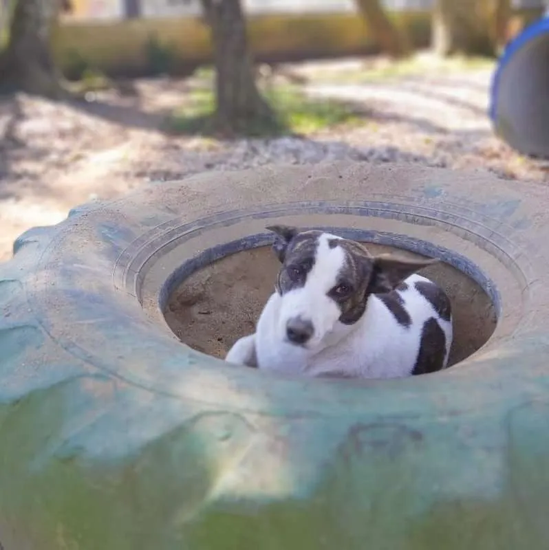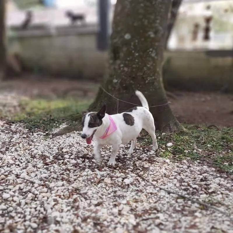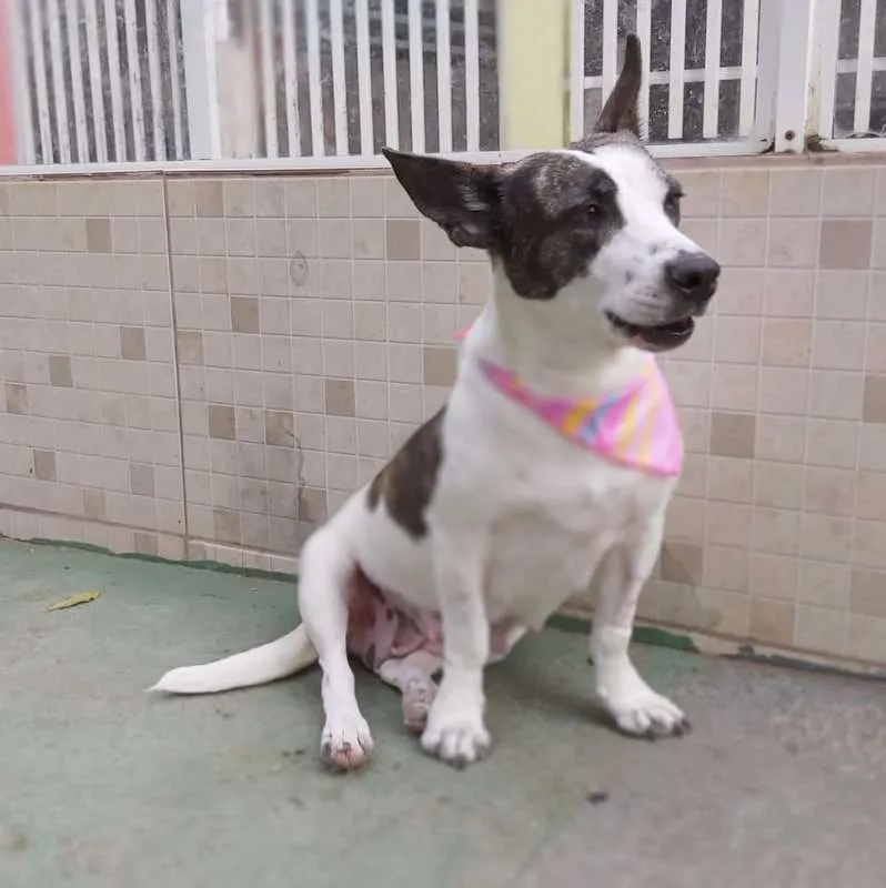 Uma princesa com as orelhas mais lindas!!! Com aproximadamente 2 anos, foi castrada e está com as vacinas programadas. É de porte médio, baixinha, mas é pesada, tem pernas curtas o que faz dela uma guria entroncadinha e rebaixada, tornando-a única. Dócil e tem se relacionado bem com os colegas, com a gente então, nem se fala. Queremos muito uma família especial que lhe proporcione tudo de bom, que não tenha experimentado antes de chegar no abrigo.