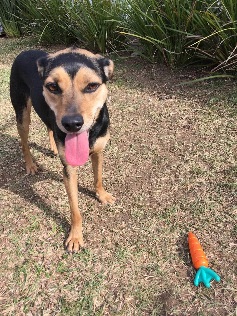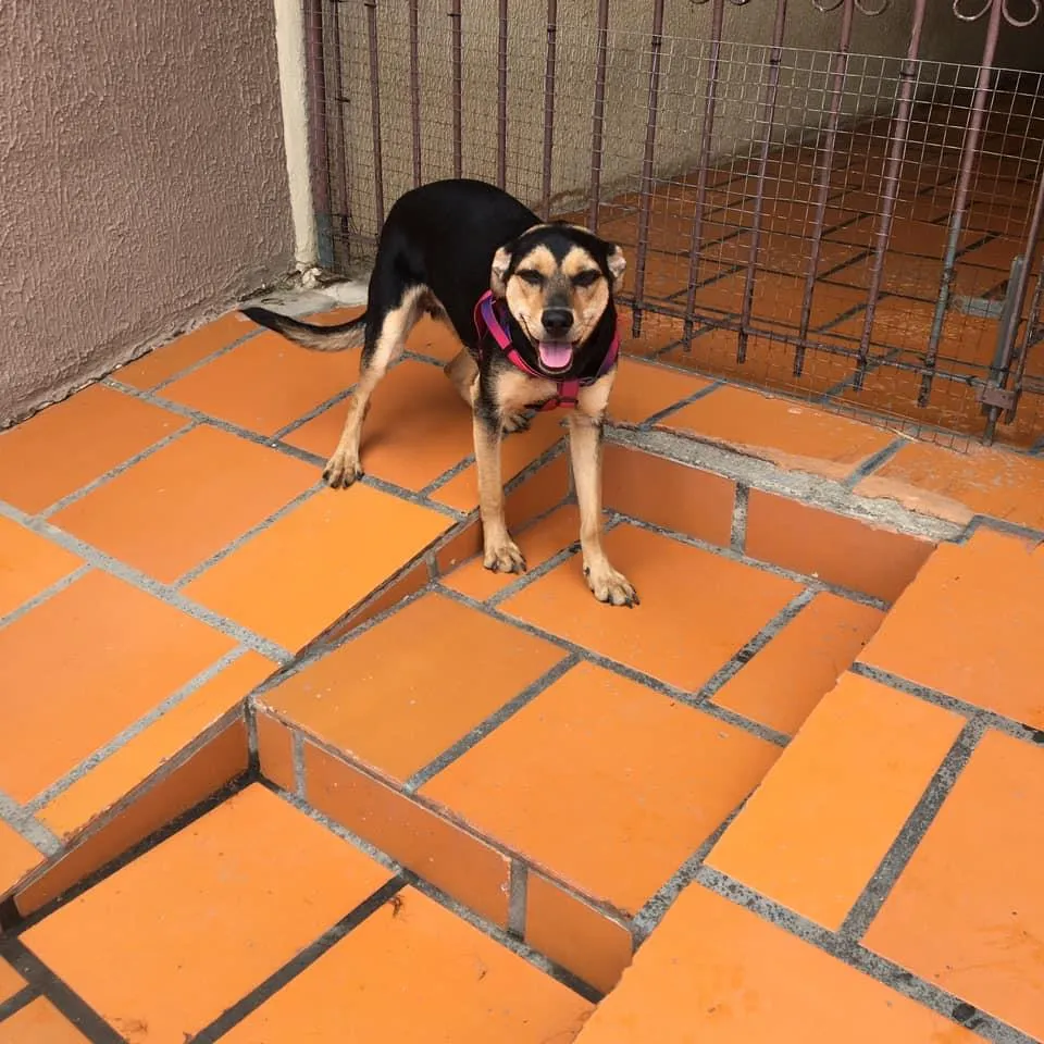 Medrosa e receosa no começo, adora brincar, precisa de um cãozinho para cia, casa com quintal e paciência na adpatação.