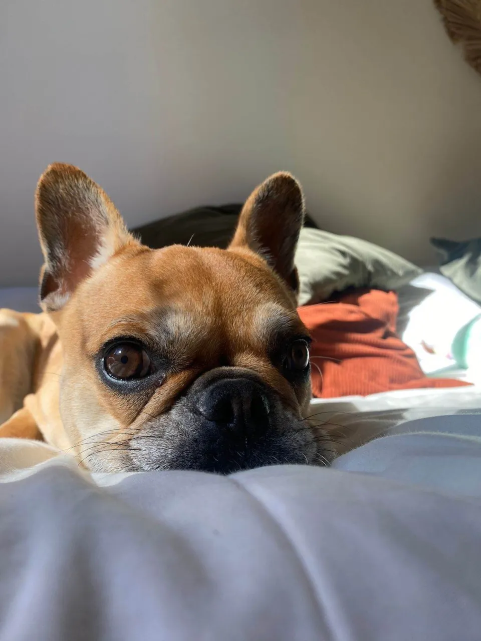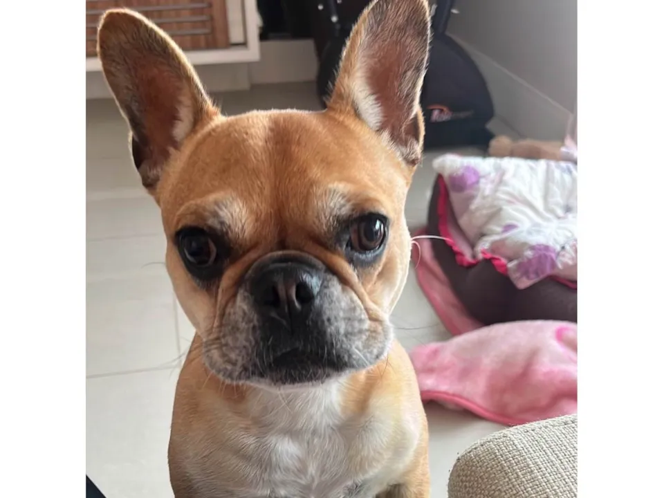 Temos uma cachorrinha buldogue francês chamada Meg. Veio para nós com 3