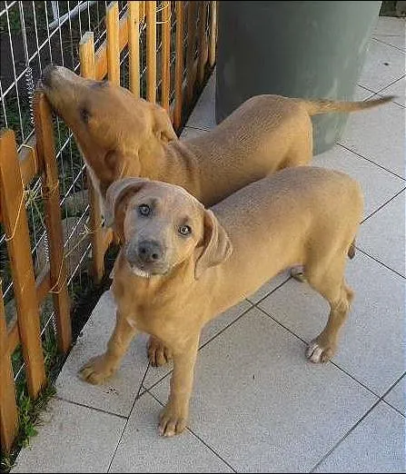 Irmã dos olhos azuis muito parecida com ele, também tem traços que lembram o Weimaraner, a mãe é porte pequeno, mas ela provavelmente ficará médio, é esguia, tem as patas compridas, orelhas caídas, muito ativa, gosta muito de correr, muito amiga do irmão, Tinha uma hernia umbilical já corrigida, está castrada e vacinada, o ideal seria se pudesse ser adotada com o irmão pois são muito amigos. Resgatada com a mãe e os irmãos, também tem olhos claros azul esverdeado.
