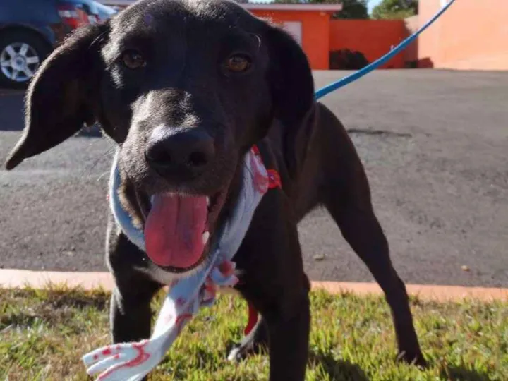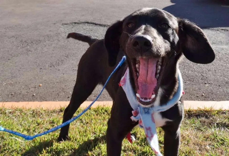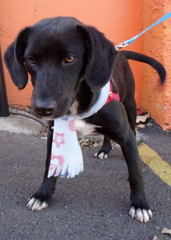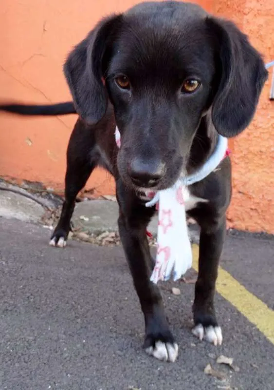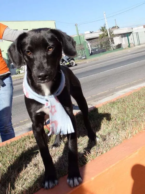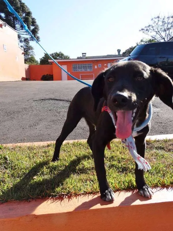 Negresco, macho, 8 meses, castrado, 2 dose da vacina. Filhotão porte médio que adora brincar.