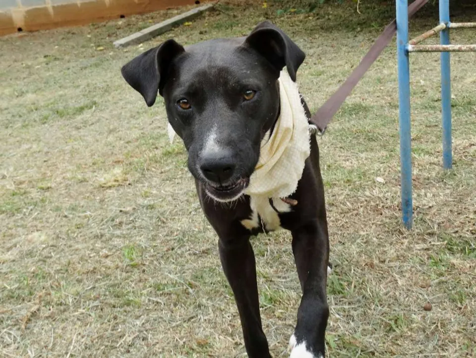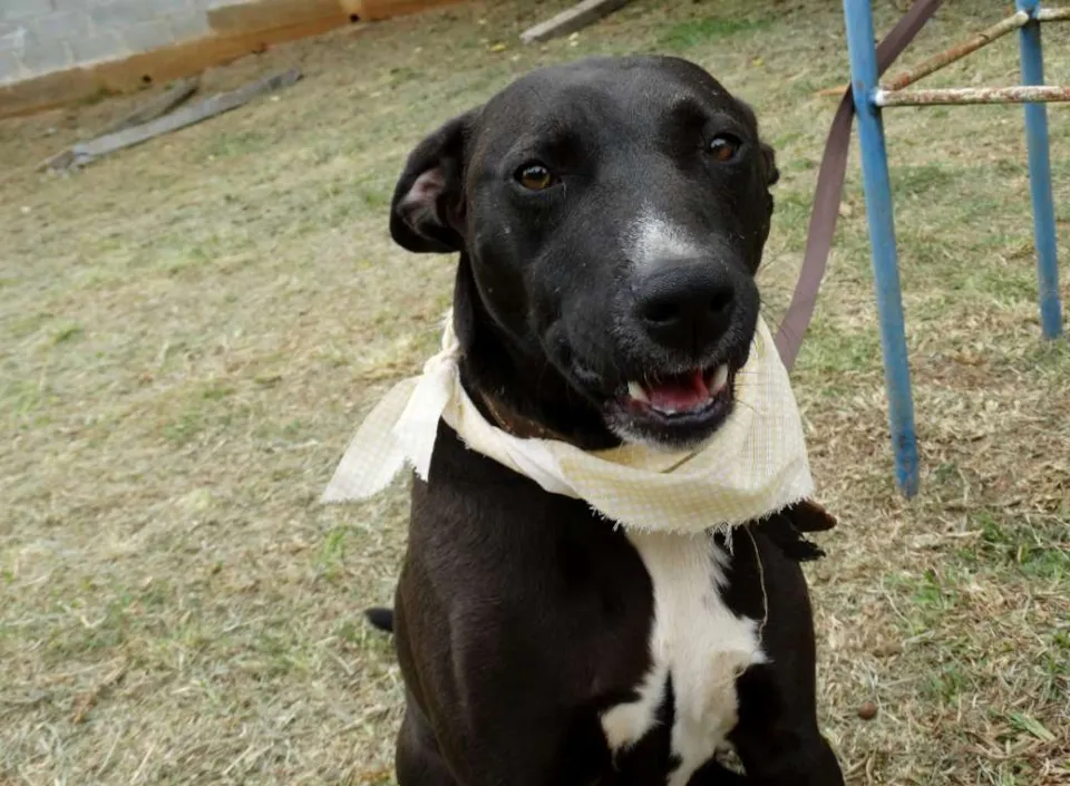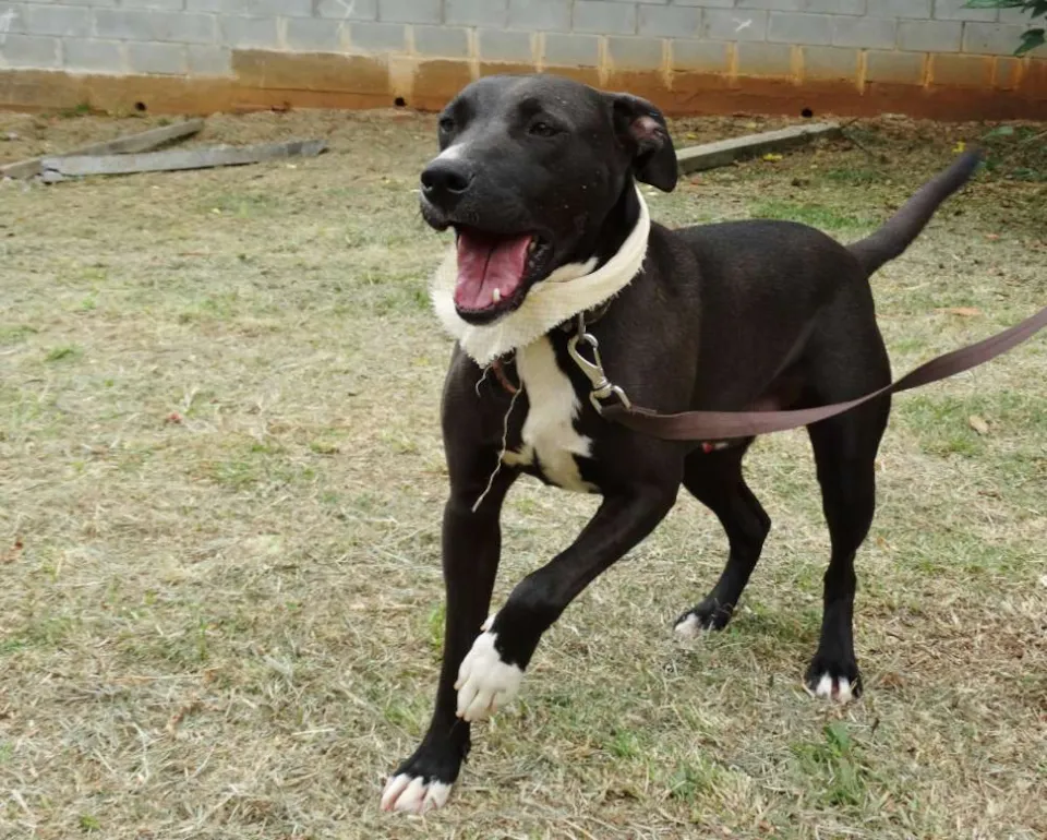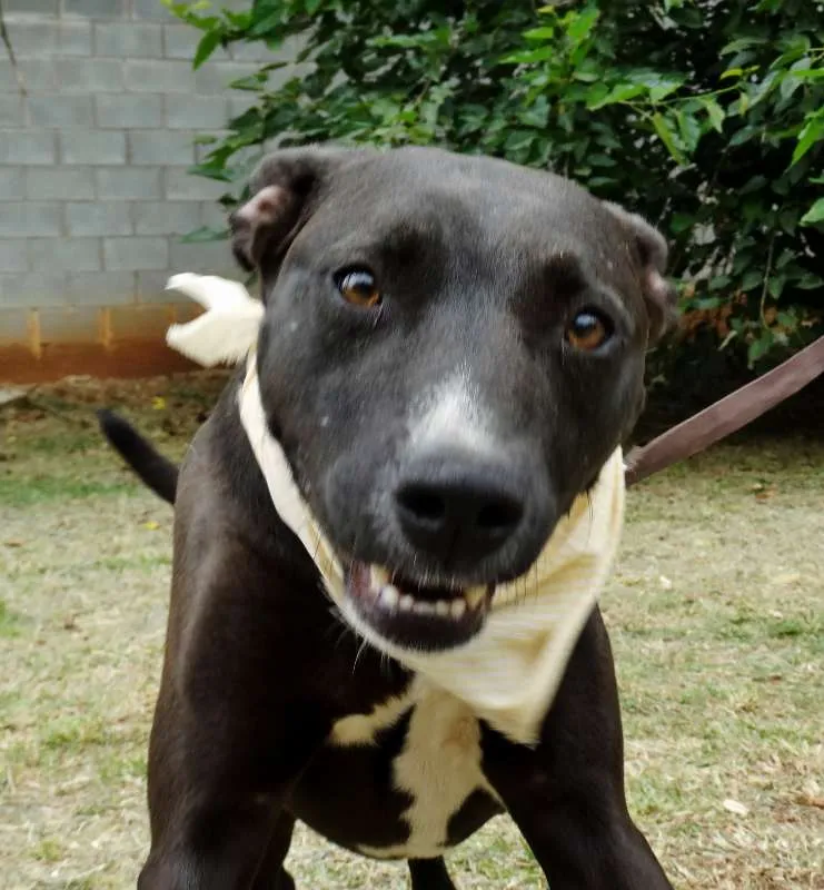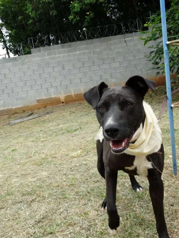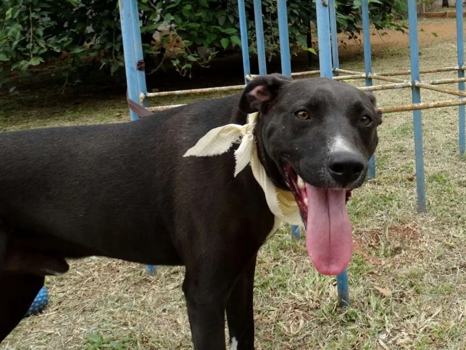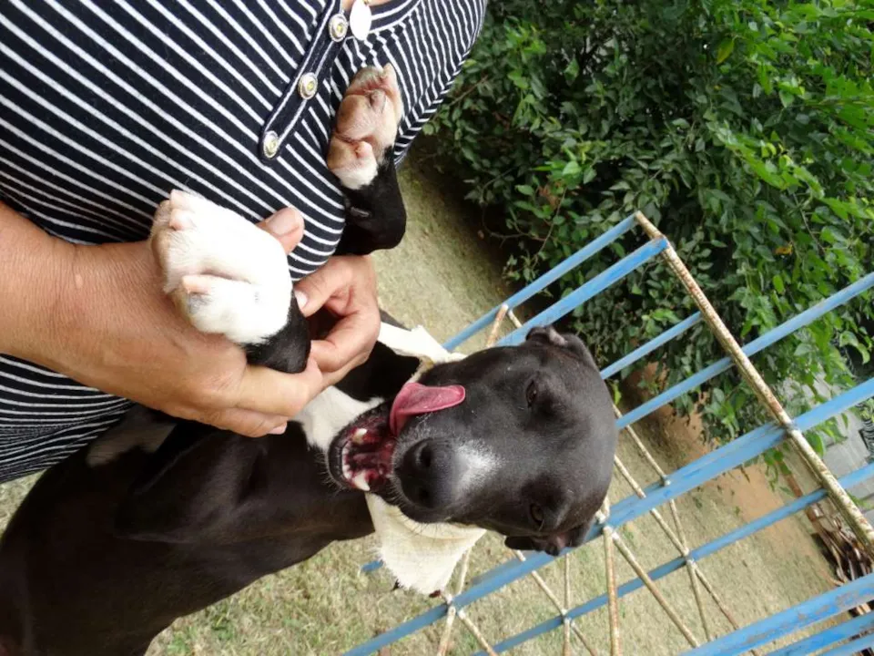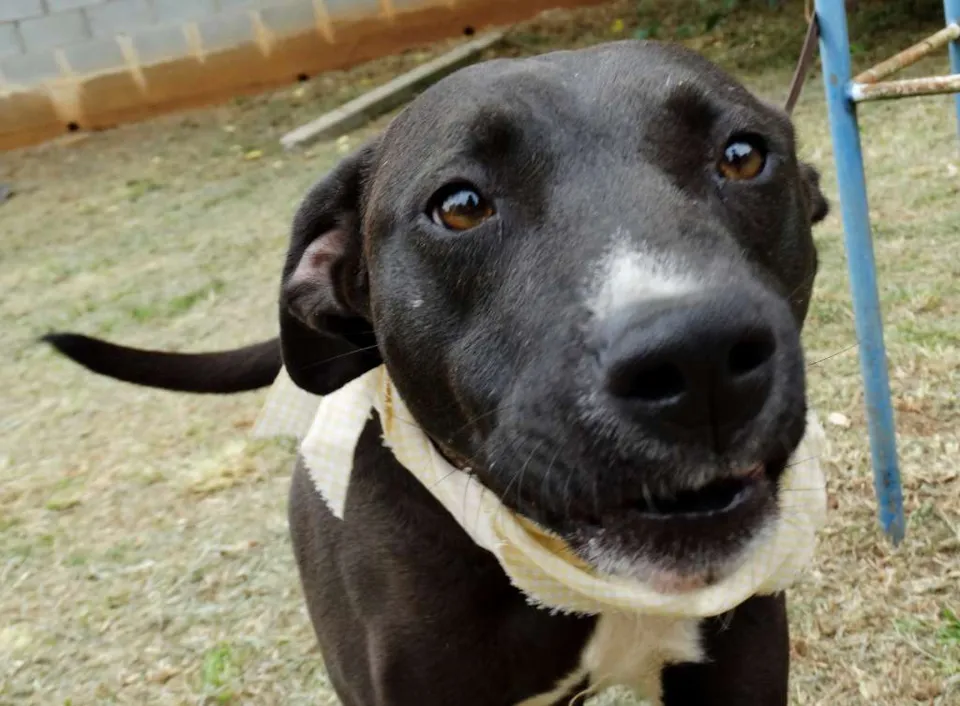 Esse simpatiCÃO aí é o Neto. Netinho pros íntimos (e do jeito que ele é amistoso, a gente fica íntimo dele em 5 minutos). Ele foi batizado assim porque era um pretinho pequenininho quando foi resgatado. CRESCEU pacas, mas continua fofo, carinhoso, carentão...e meio estabanado, claro, com todo este tamanho.