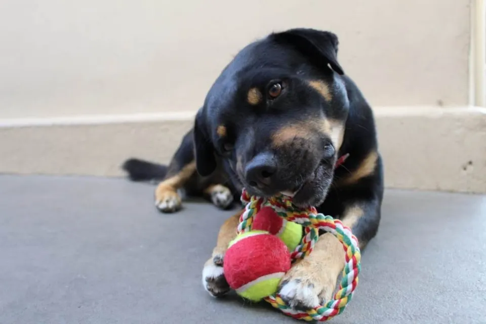 O Nuno é um cão de porte médio extremamente dócil com humanos! Se você procura um cãopanheiro para ver séries e fazer carinho, ele é o pet certo! Ideal para quem não tem outros cães, pois ele é bem ciumento. A pessoa deve ter no máximo uma fêmea para companhia, pois ele fica bem irritado perto de outros machos. O Nuno é um cão forte e saudável! É castrado e gosta de ficar sempre perto de seus humanos.