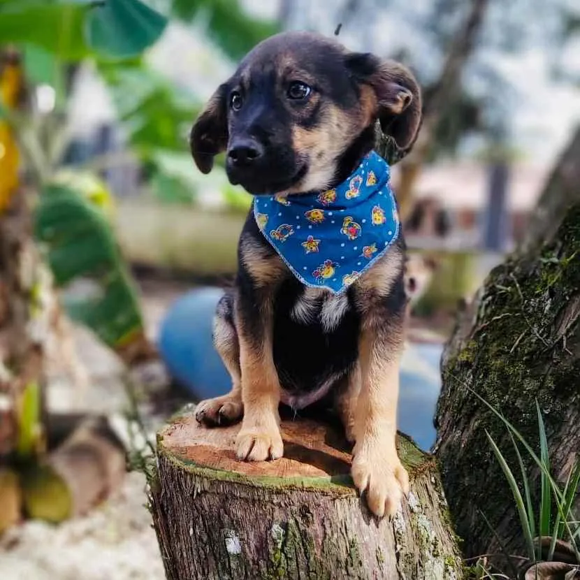 Onã chegou no abrigo juntamente com sua mãe e seis irmãozinhos. Está com aprox. 4 meses. Já foi desvermifugado, vacinado e castrado. Como todo filhote é bastante ativo, gosta muito de brincar. Ainda não podemos dizer que tamanho ficará, sua mãe pesa 10kg, mas não conhecemos o pai. Procuramos por uma família amorosa e responsável que lhe proporcione uma vida muito feliz!