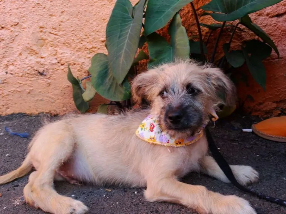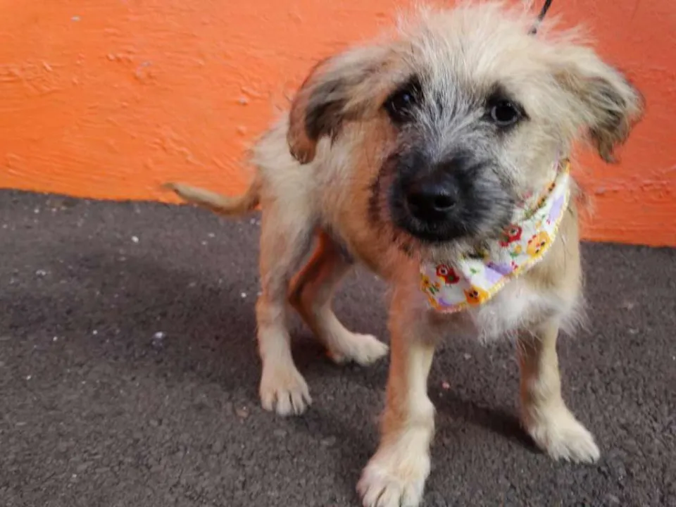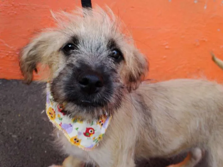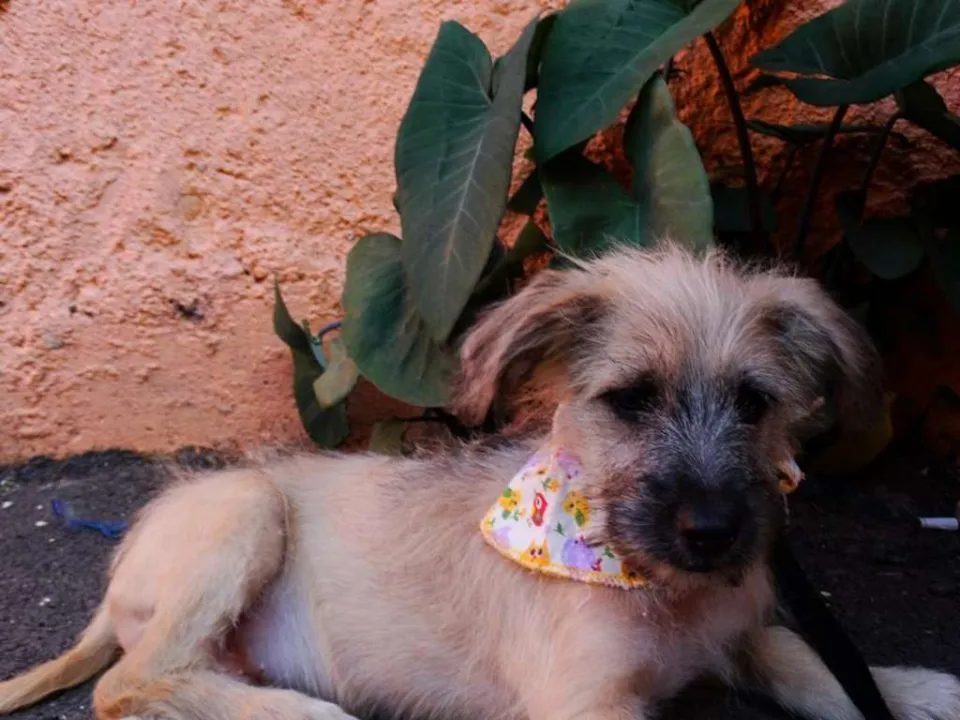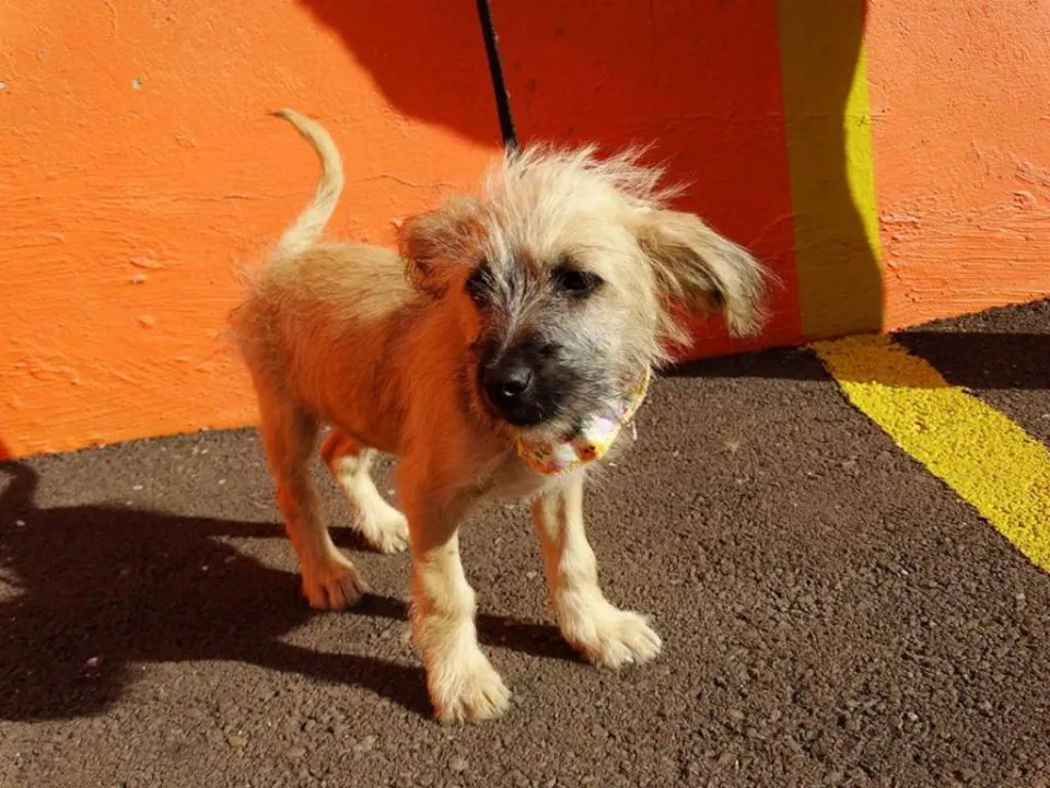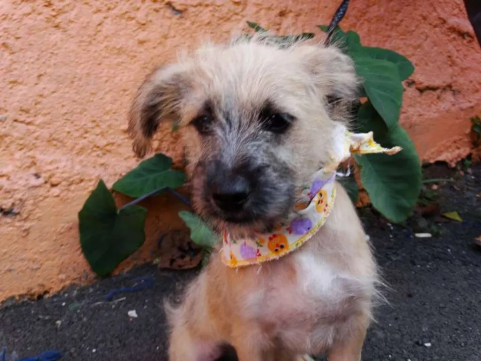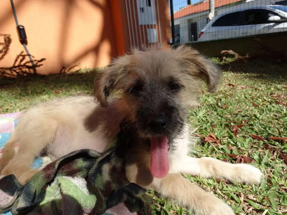 Ozzy, 4 meses, vacinado e castrado. Não conhecemos os pais e acreditamos em porte pequeno/ médio. É um filhote mais calmo e tranquilo ideal para apto.