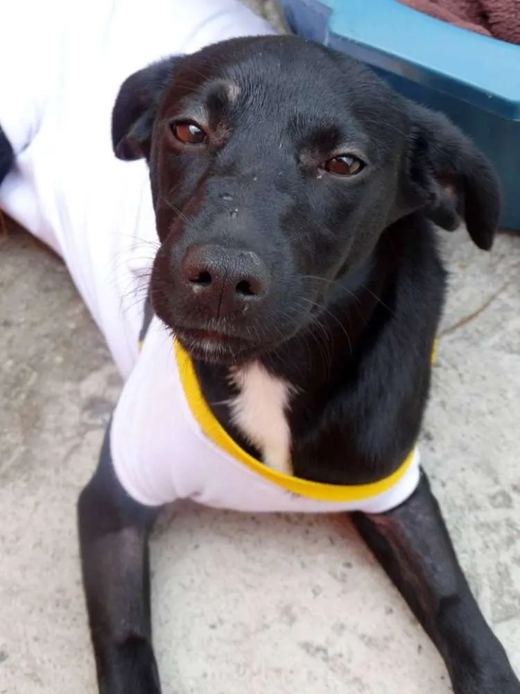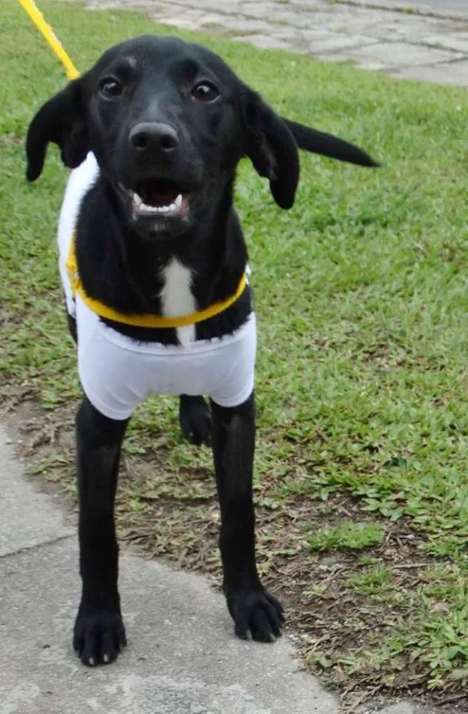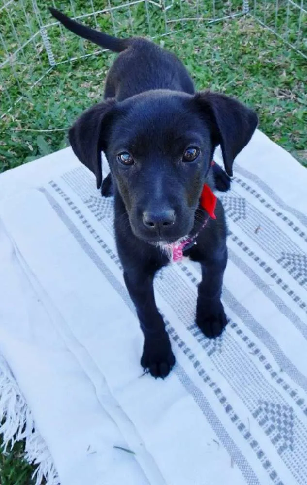 Rafa tem em torno de 5 a 6 meses, está castrada e vacinada. Deve ficar porte pequeno/médio em torno de 12kg. É uma filhotinha muito "mimada" que adora colo e carinho mas não aceita muito outros cães.