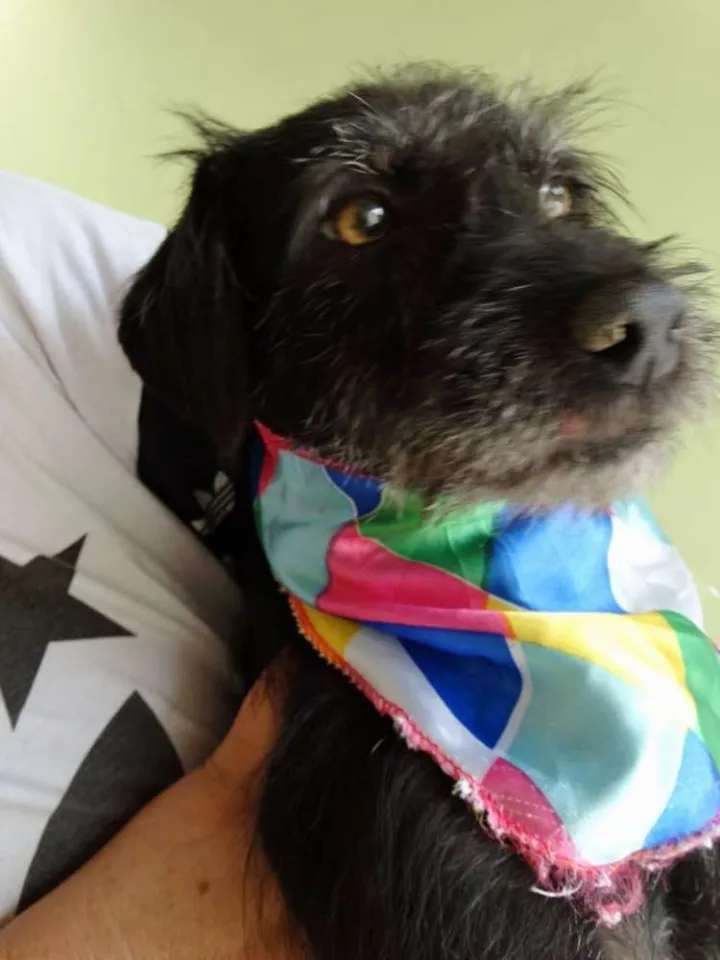 Sasha - fêmea,porte pequeno (8 Kg ),castrada e vacinada. Os pêlos brancos no fuço são puro charme, ela não tem 2 anos , é novinha. Adora cafuné, super alegre e carinhosa. Convive bem com outros cães, gatos e crianças. Para adotá-la entre em contato com Ivonete 41-999601852