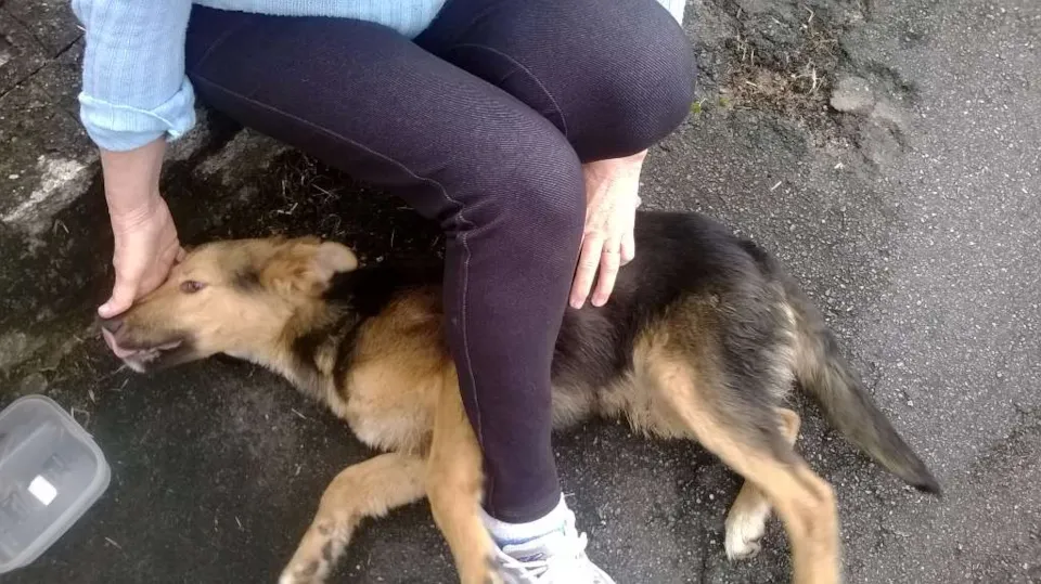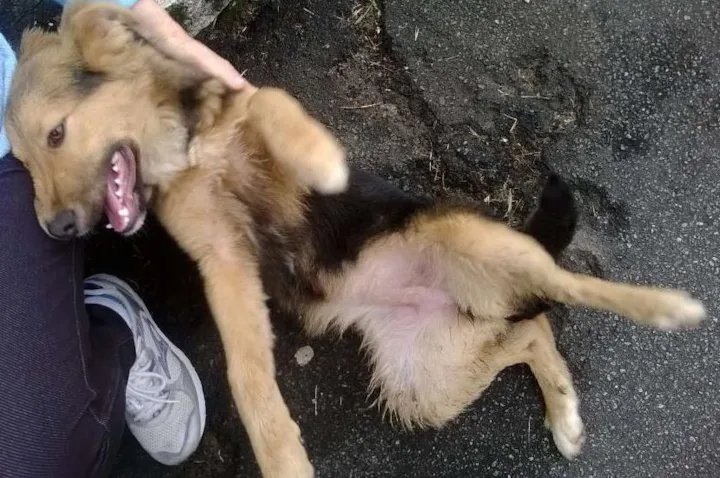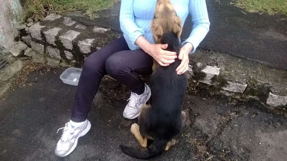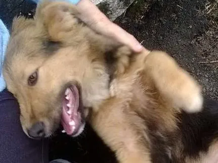 Linda filhote mestiça de pastor alemão.
