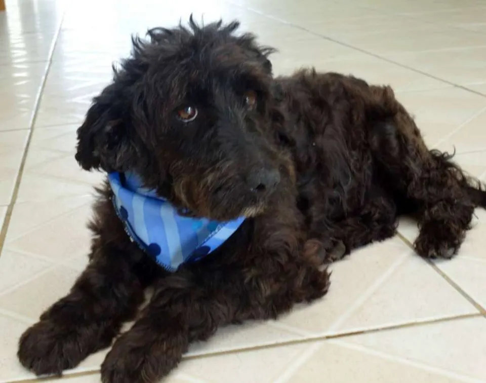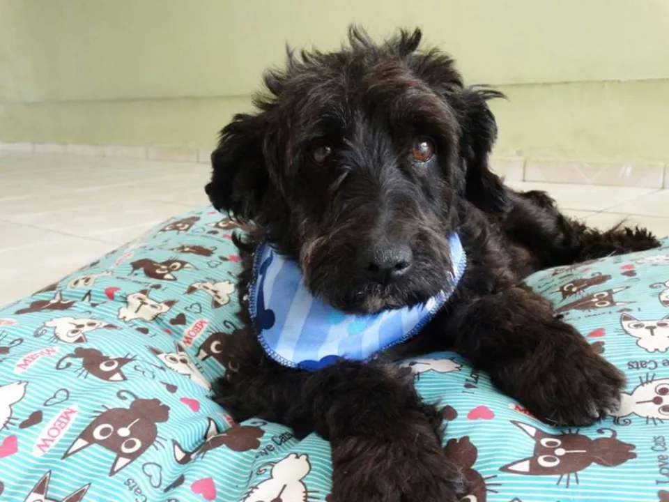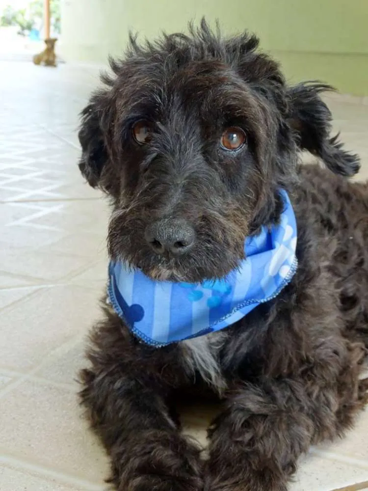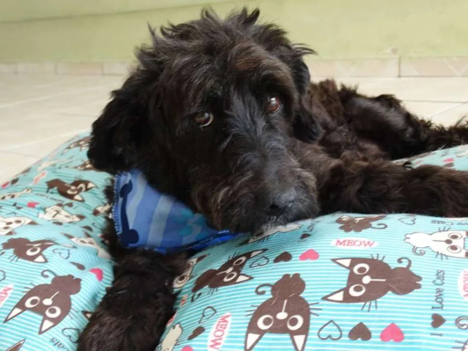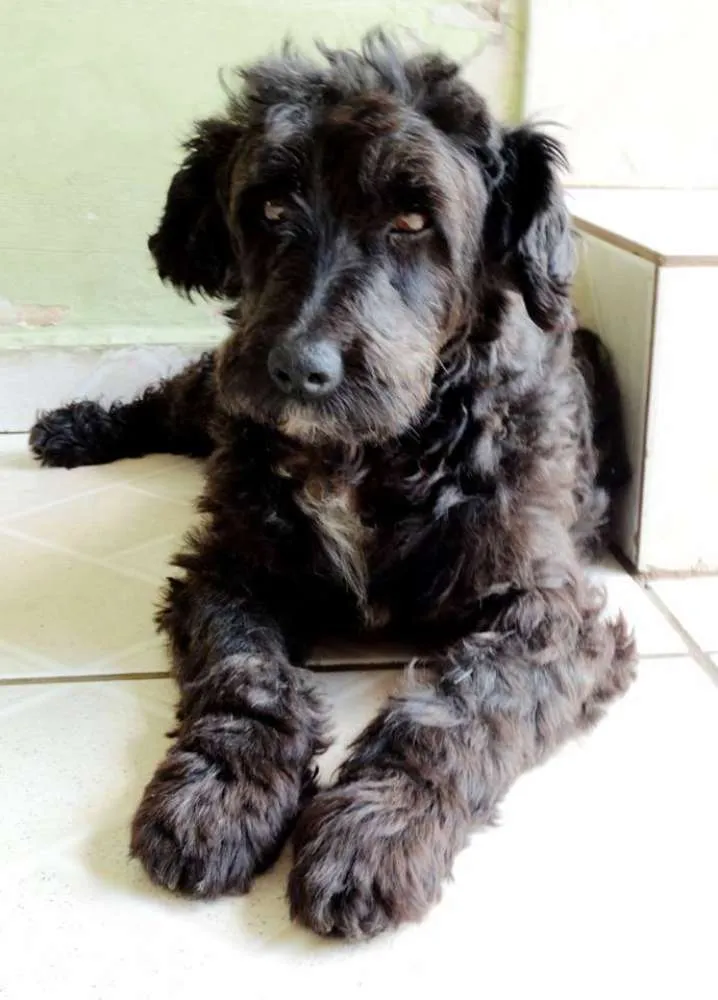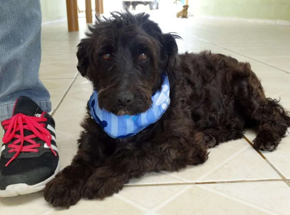 Tem em torno de 2 anos, calmo e tranquilo. Mas tem um pouco de incontinência urinária devido maus tratos que sofreu.