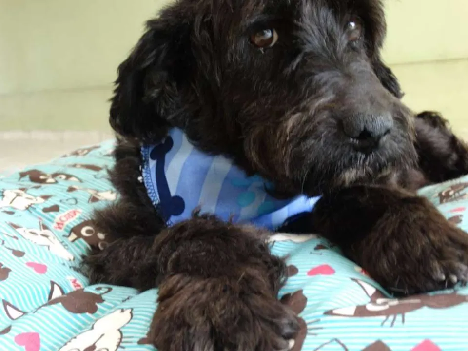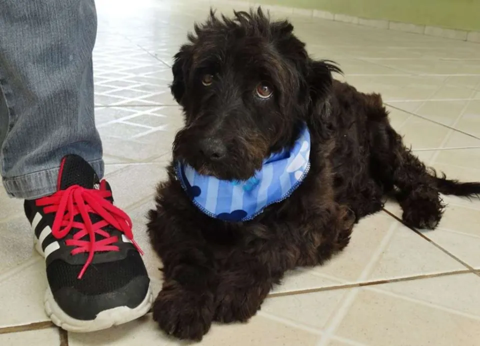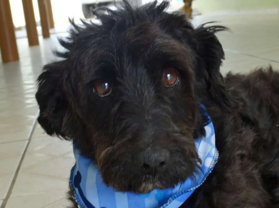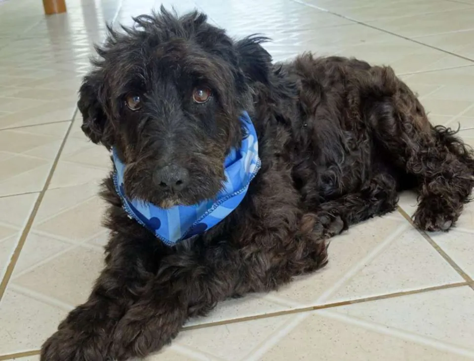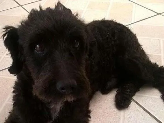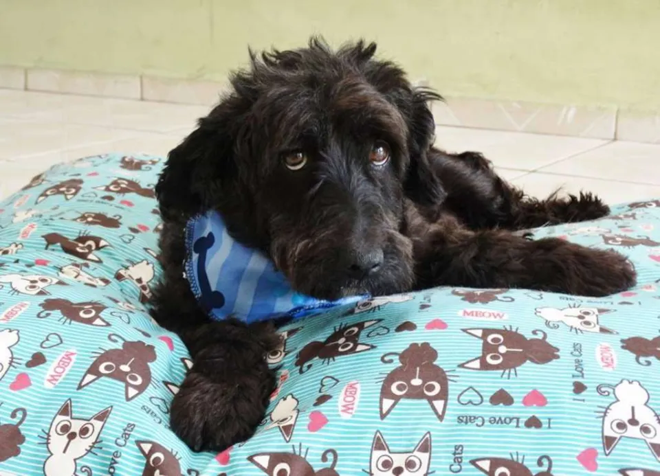 Tem em torno de 2 anos, calmo e tranquilo. Mas tem um pouco de incontinência urinária devido maus tratos que sofreu.