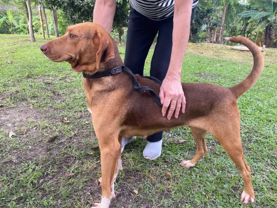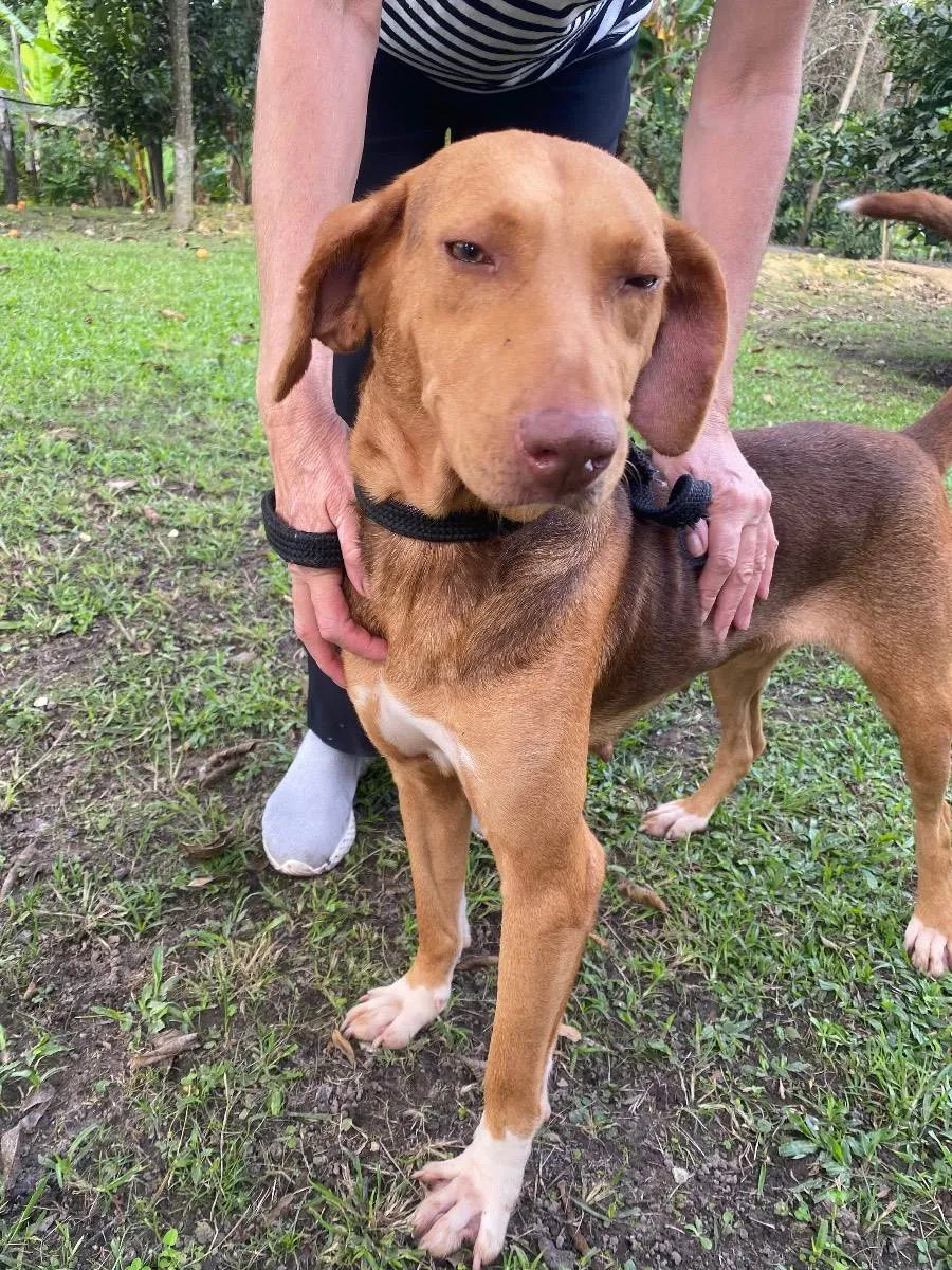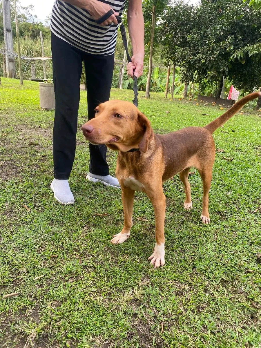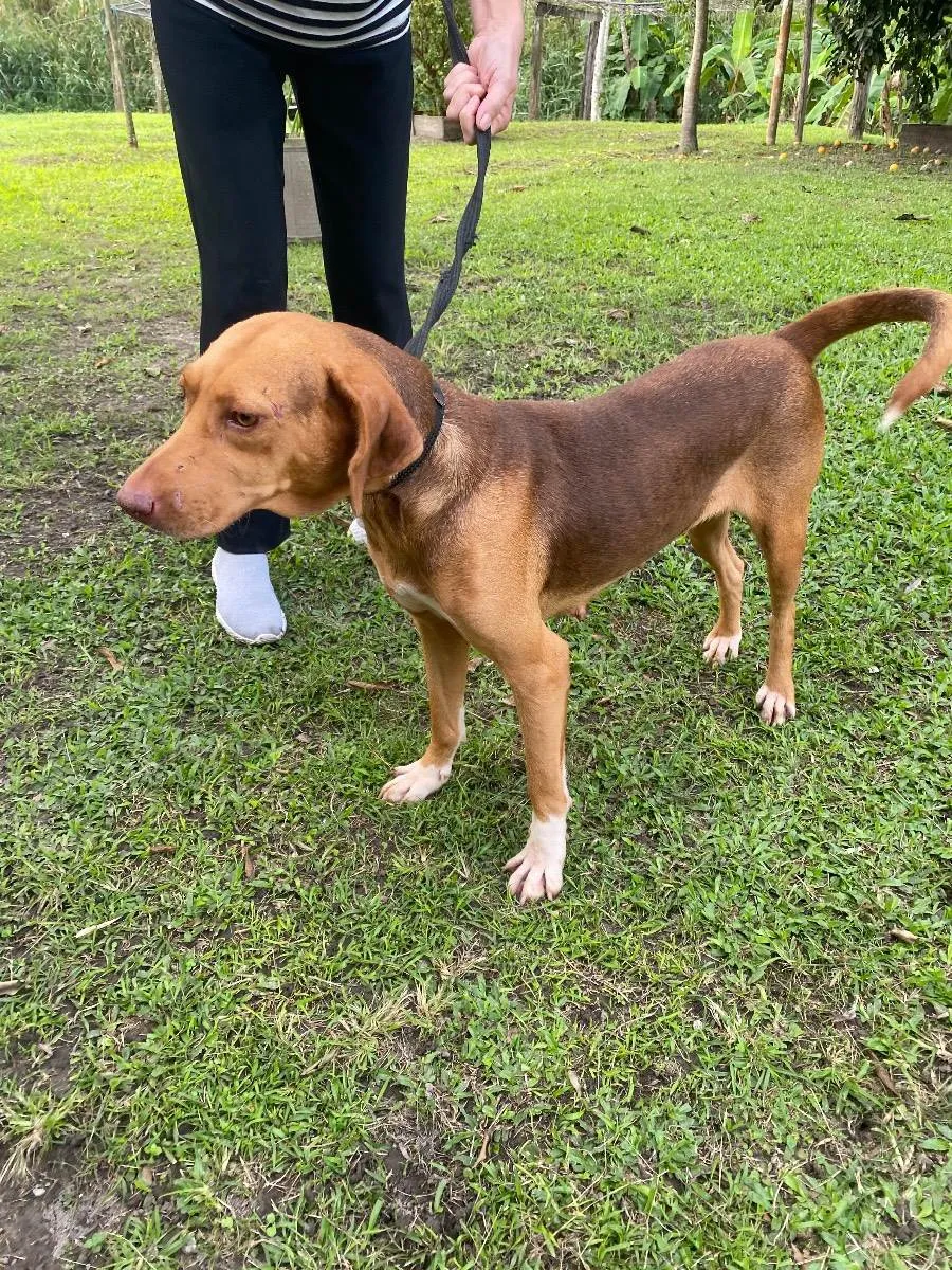 Oi pessoal! Eu sou a Sol. Fui resgatada vítima de maus tratos. Era só pele e osso, mas umas tias me cuidaram e eu fiquei assim lindona. Mestiça com perdigueiro, a Sol é linda, amorosa, obediente e comportada. Porte grande, castrada e vacinada.