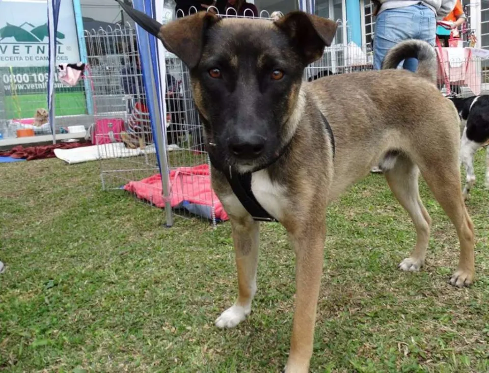 Stallone, macho, porte médio, vacinado e castrado. Se da bem com outros cães mas prefere fêmeas, ideal para casas com espaços, é um cão alerta porém dócil e carinhoso.