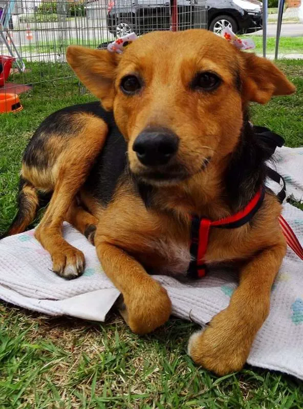 Sunny é uma cachorrinha tranquila, dócil, ainda um pouco assustada, mas logo se adapta e se torna alegre e brincalhona. Se dá bem com outros animais, inclusive gatos. Sunny pesa 13kg está castrada e vacinada.