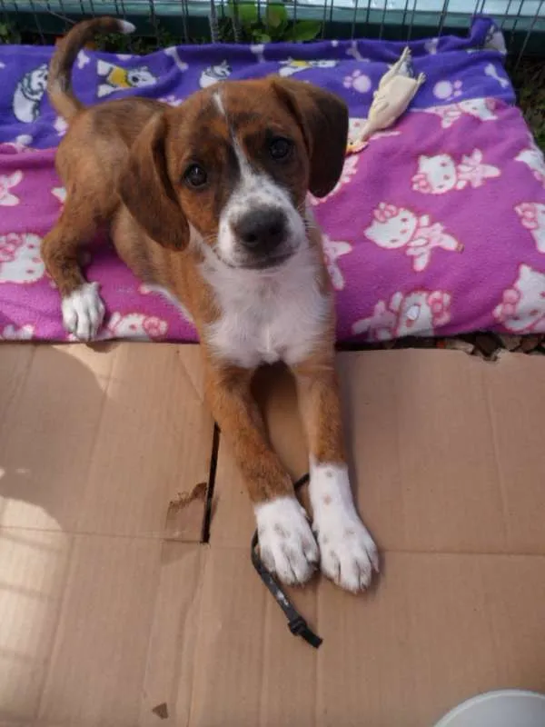 Thor, 3 meses, castrado, 2 doses da vacina. Adotante deverá completar o ciclo de vacinação.